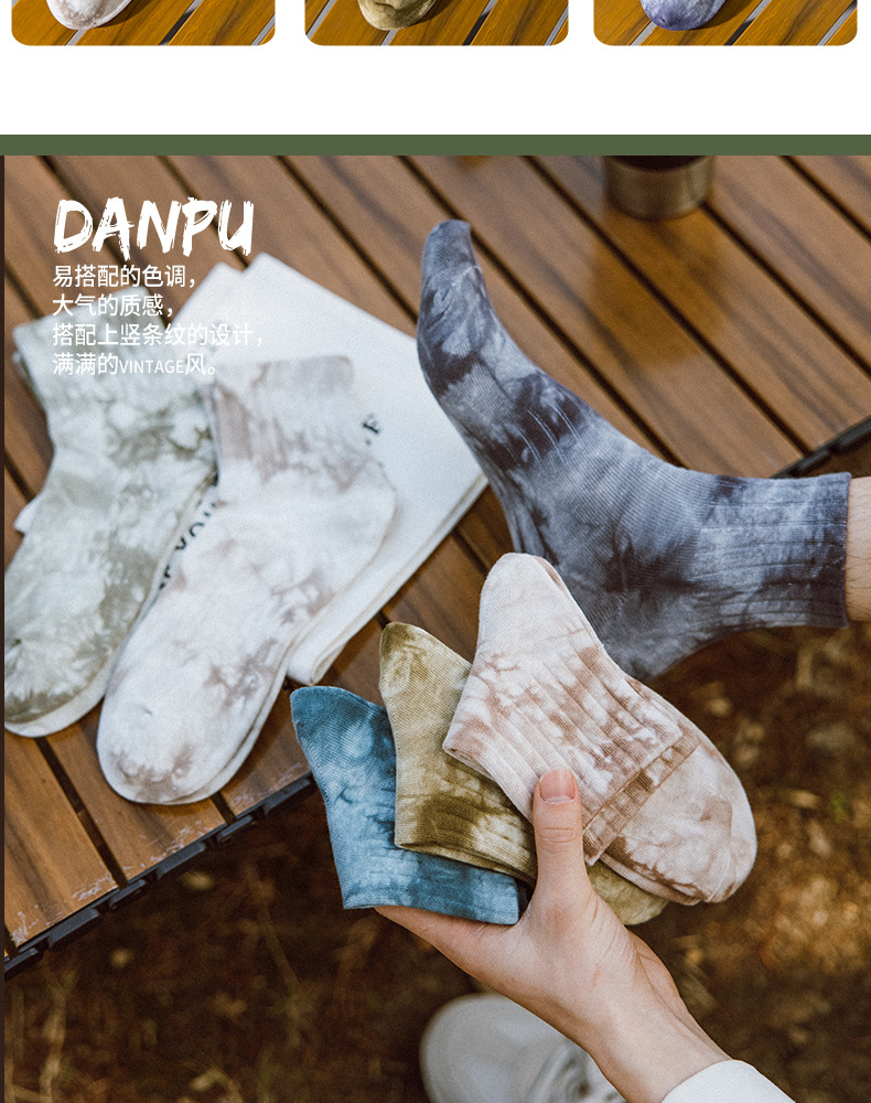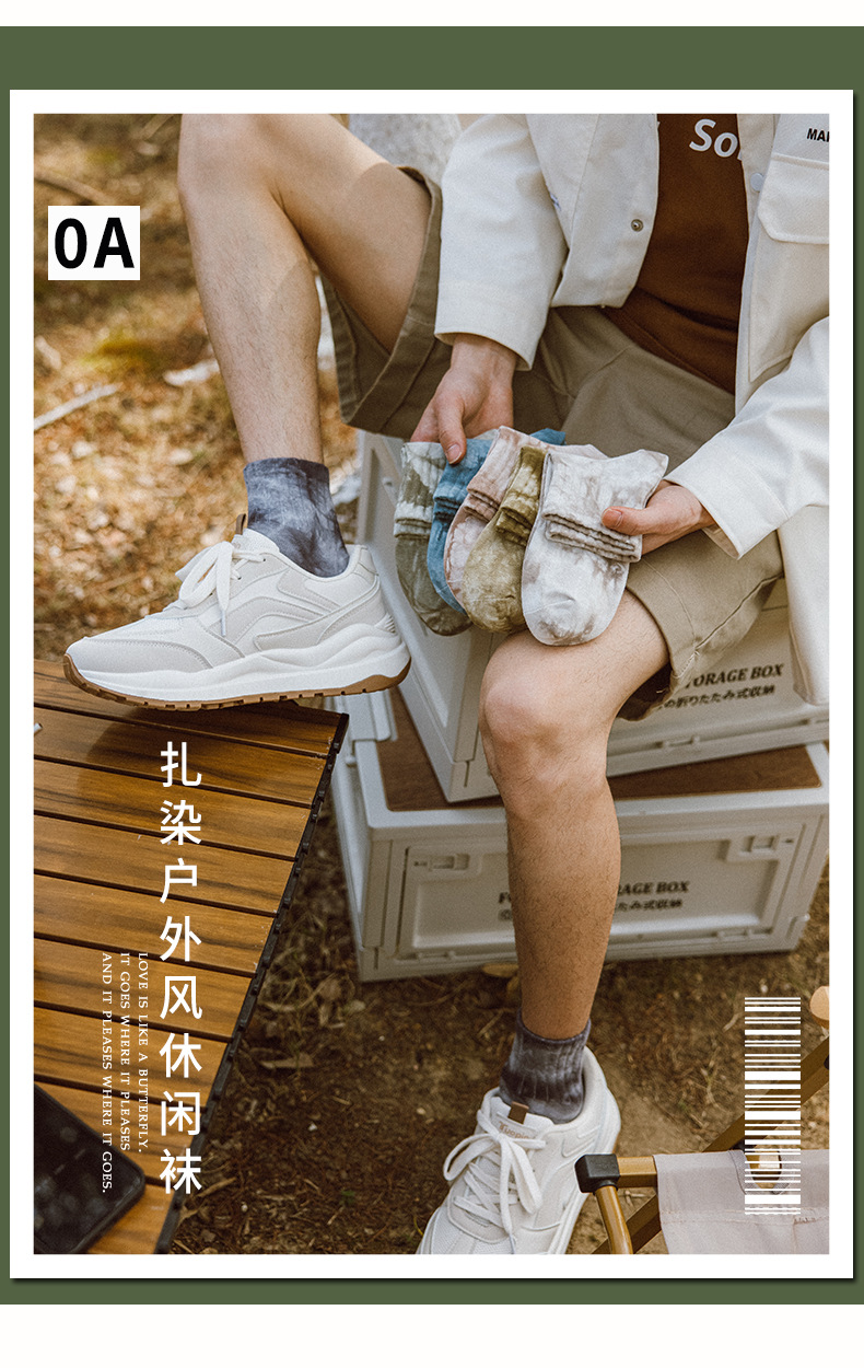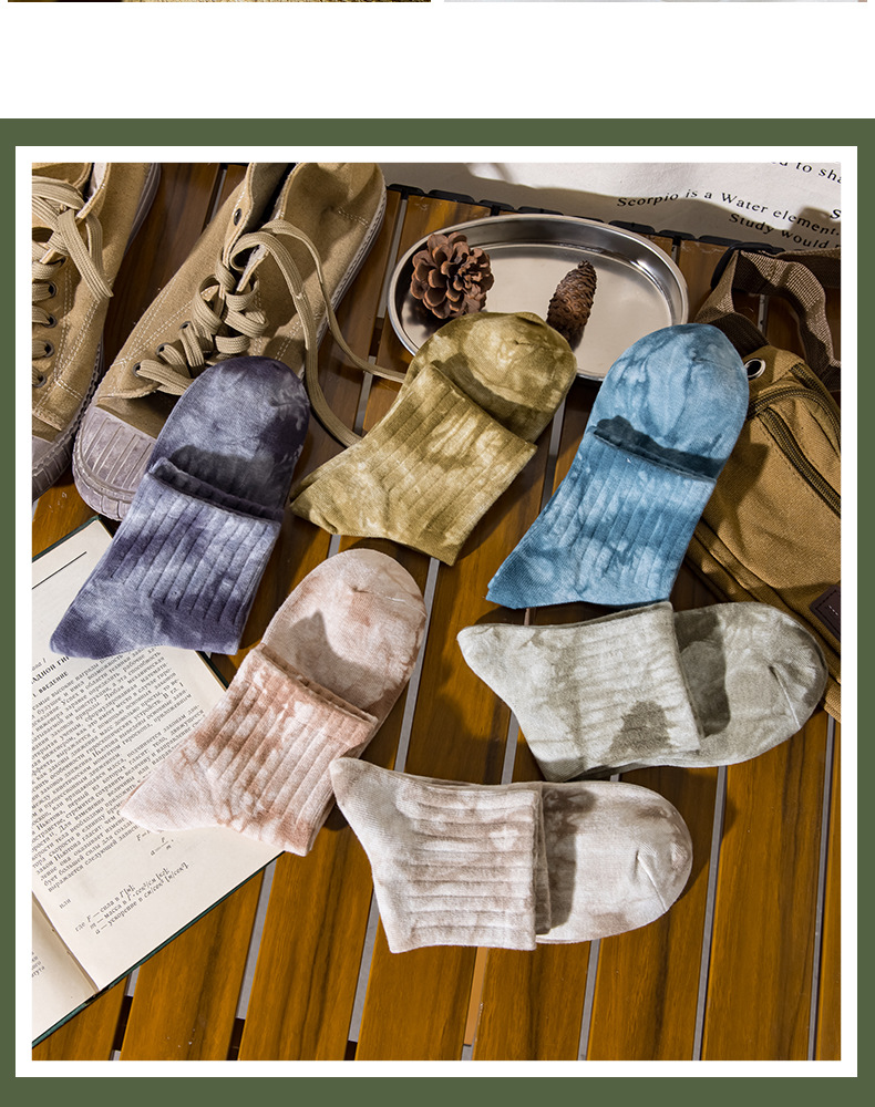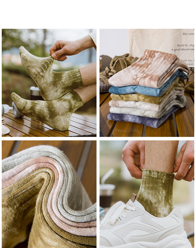 25 봄과 여름 양말 여성용 짧은 튜브 넥타이 염색 코튼 양말 커플 스트리트 트렌디 양말 캐주얼 중형 튜브 땀 흡수성 남성 양말