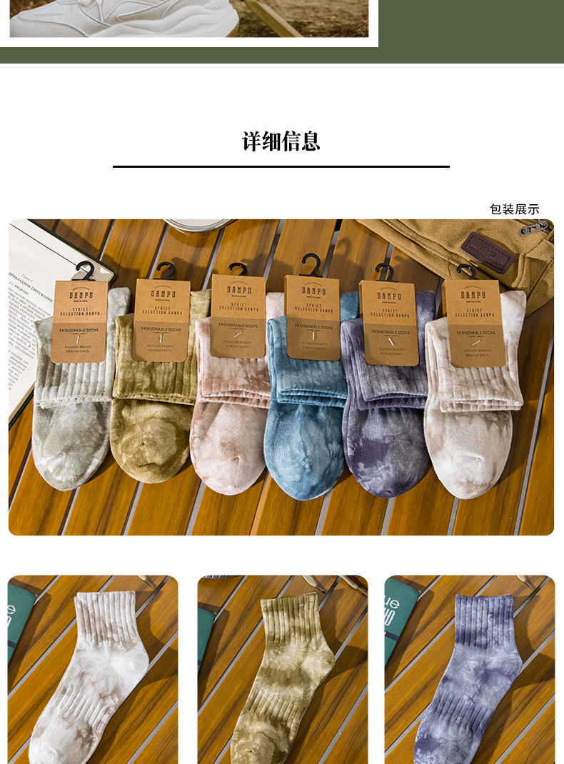 25 봄과 여름 양말 여성용 짧은 튜브 넥타이 염색 코튼 양말 커플 스트리트 트렌디 양말 캐주얼 중형 튜브 땀 흡수성 남성 양말스토어 가기