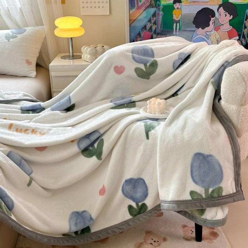 밀크 벨벳 담요 낮잠 사무실 얇은 에어컨 담요 단일 점심 휴식 플란넬 소파 침대 용 작은 이불스토어 가기