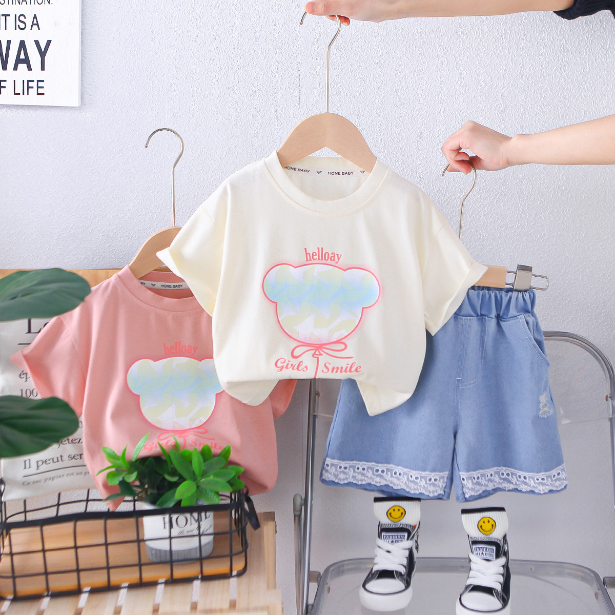 여자 여름 세트 2025 새로운 어린이 여름 반팔 캐주얼 여성 아기 한국식 만화 투피스 세트스토어 가기