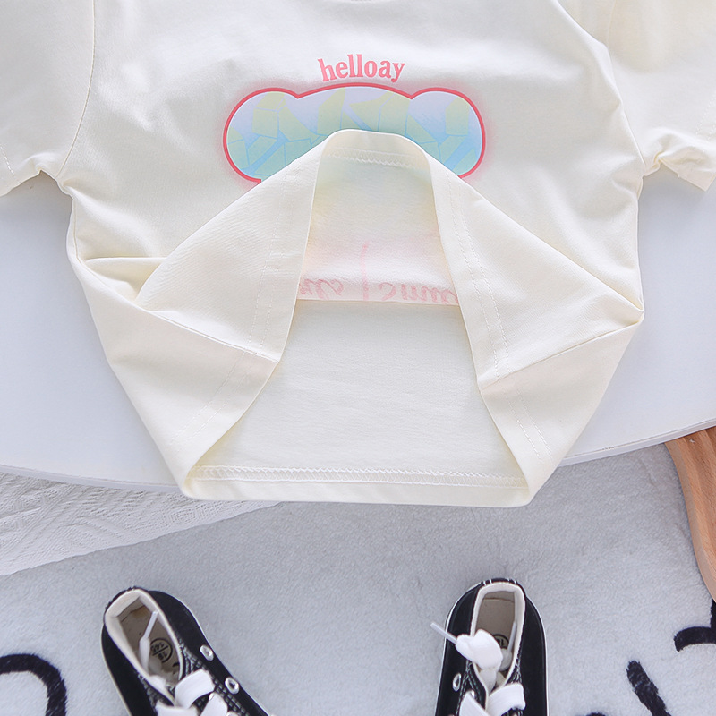 여자 여름 세트 2025 새로운 어린이 여름 반팔 캐주얼 여성 아기 한국식 만화 투피스 세트