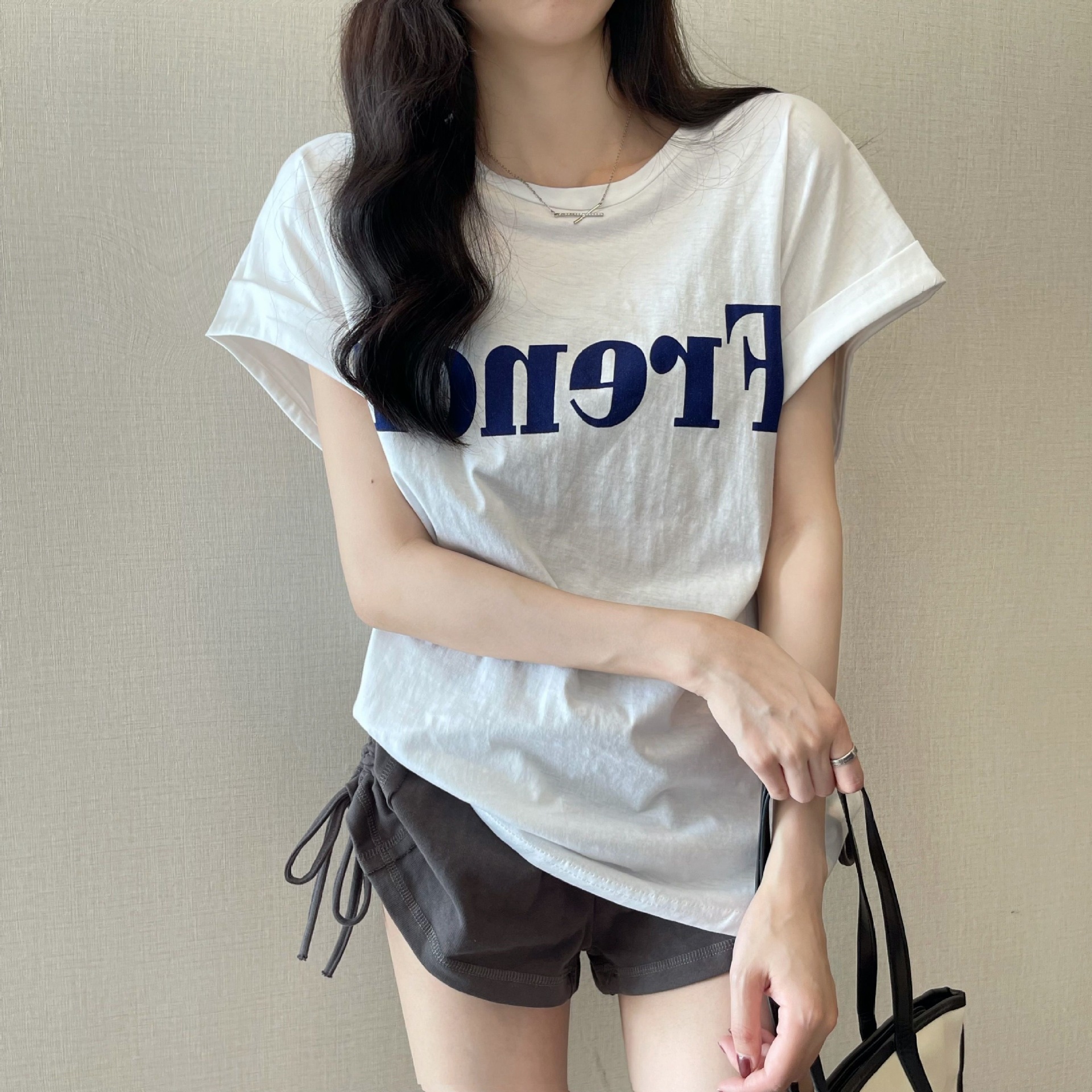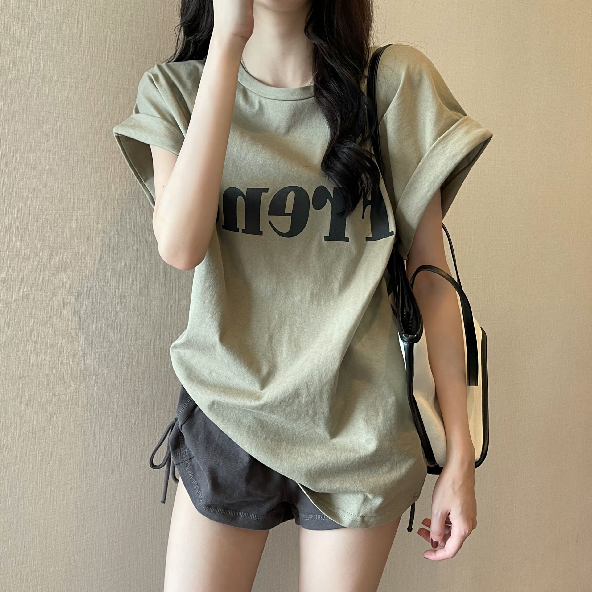 느슨한 반팔 티셔츠 여성 2025 년 새로운 여름 얇은 디자인 센스 틈새 홍콩 맛 세련된 레트로 탑 트렌디스토어 가기