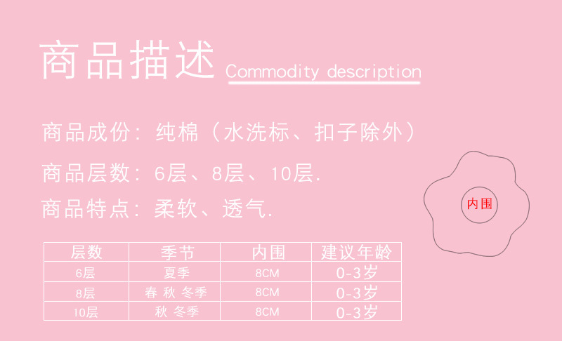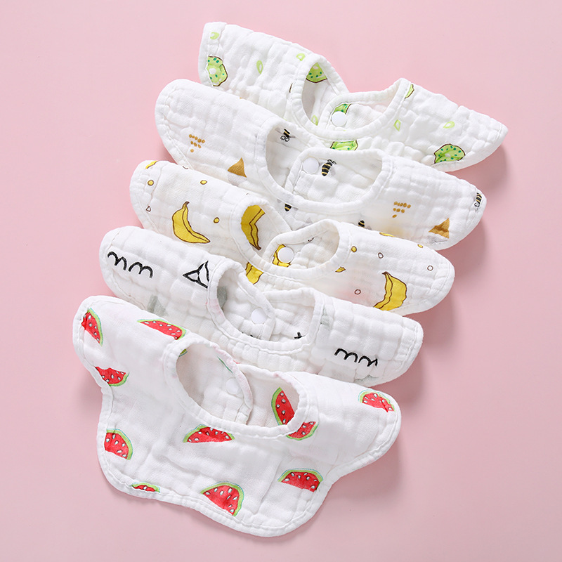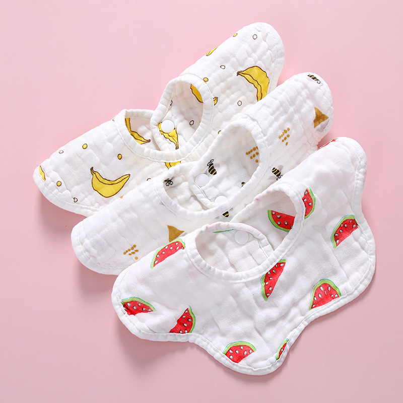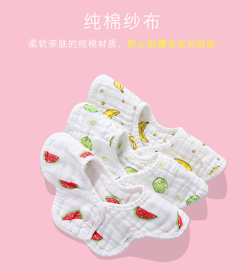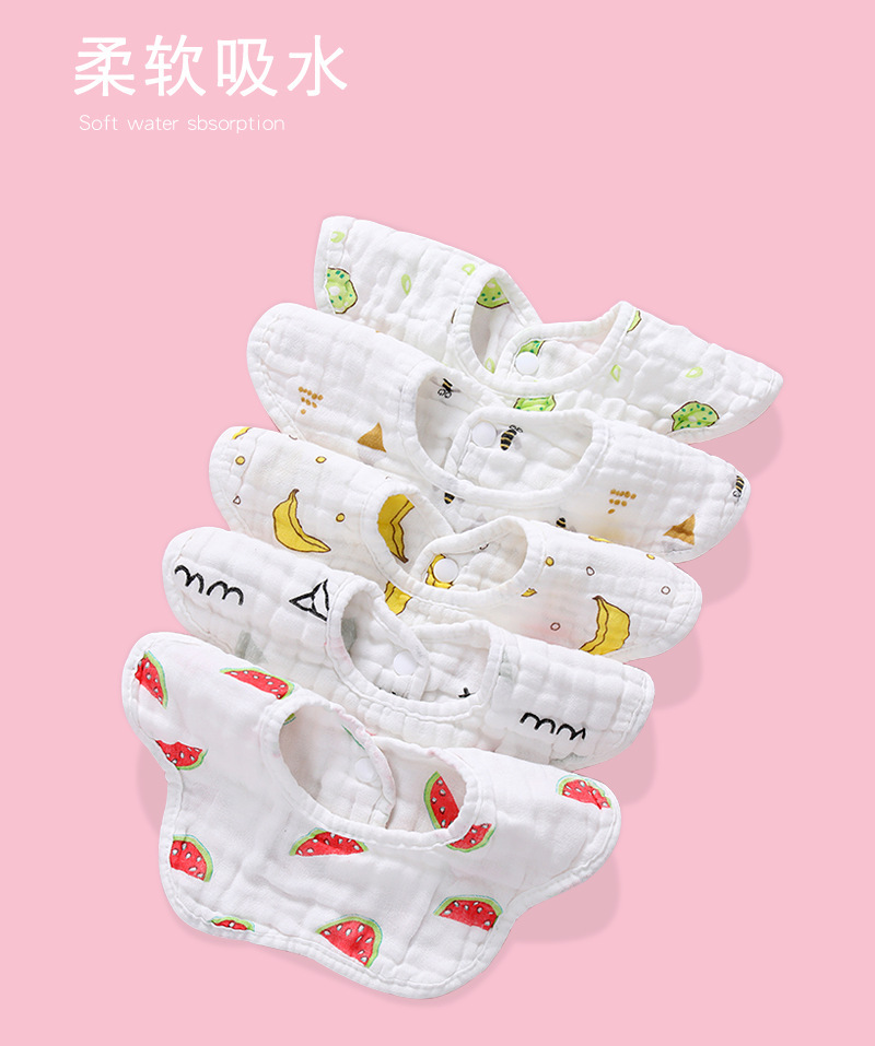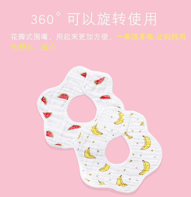 6겹 거즈 턱받이, 어린이 유아용 순면 꽃잎 프린트 턱받이, 목 보호, 흡수성, 가장자리 처리