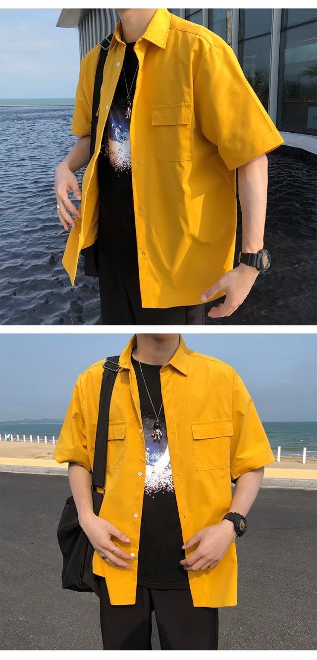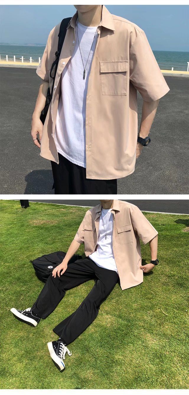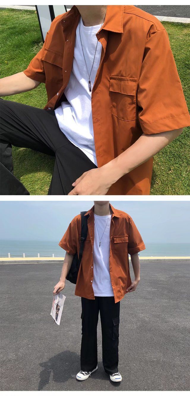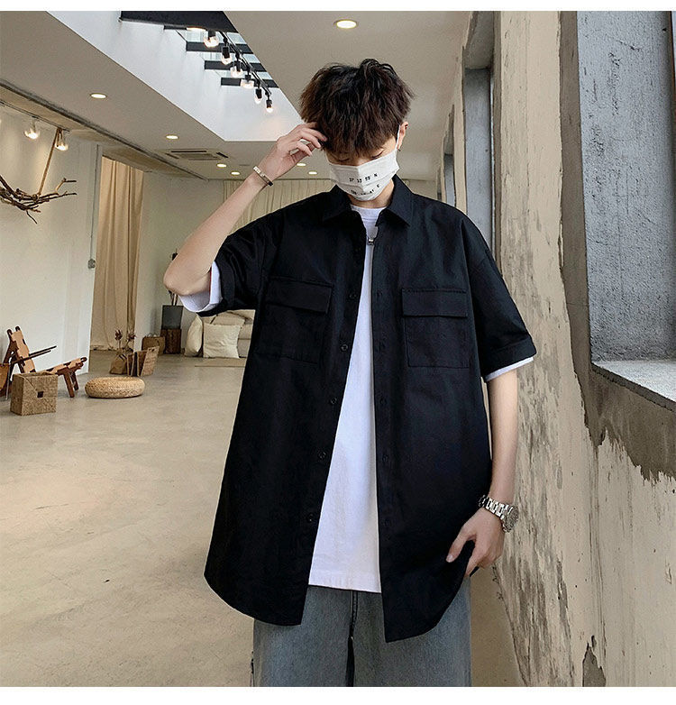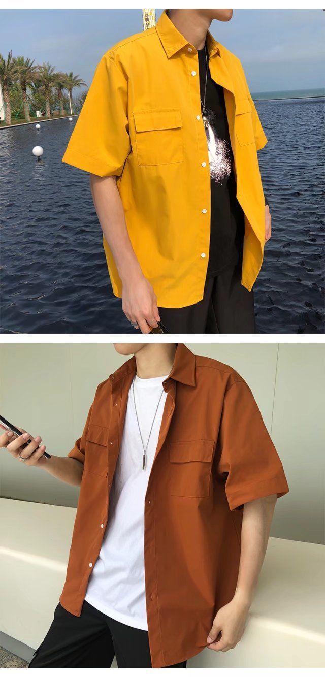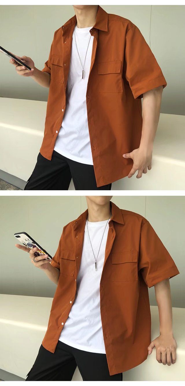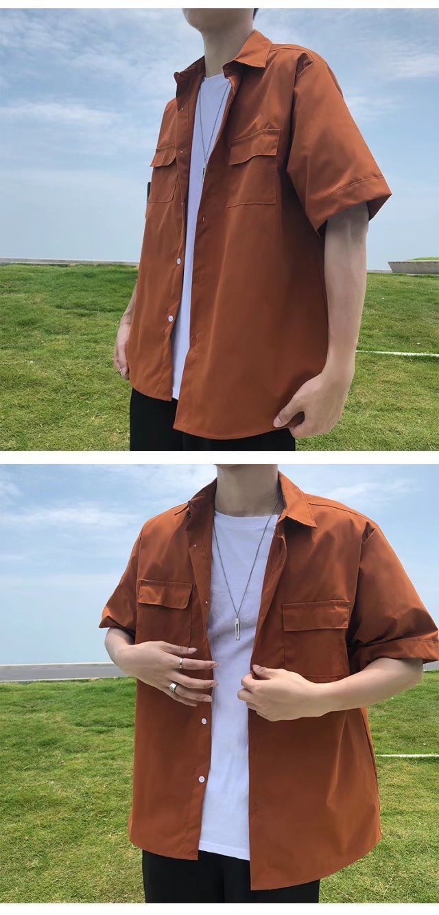 툴링 스타일 셔츠 남자 반팔 여름 느슨한 홍콩 스타일 트렌디 인 올 매치 솔리드 컬러 얇은 포켓 반소매 탑스토어 가기