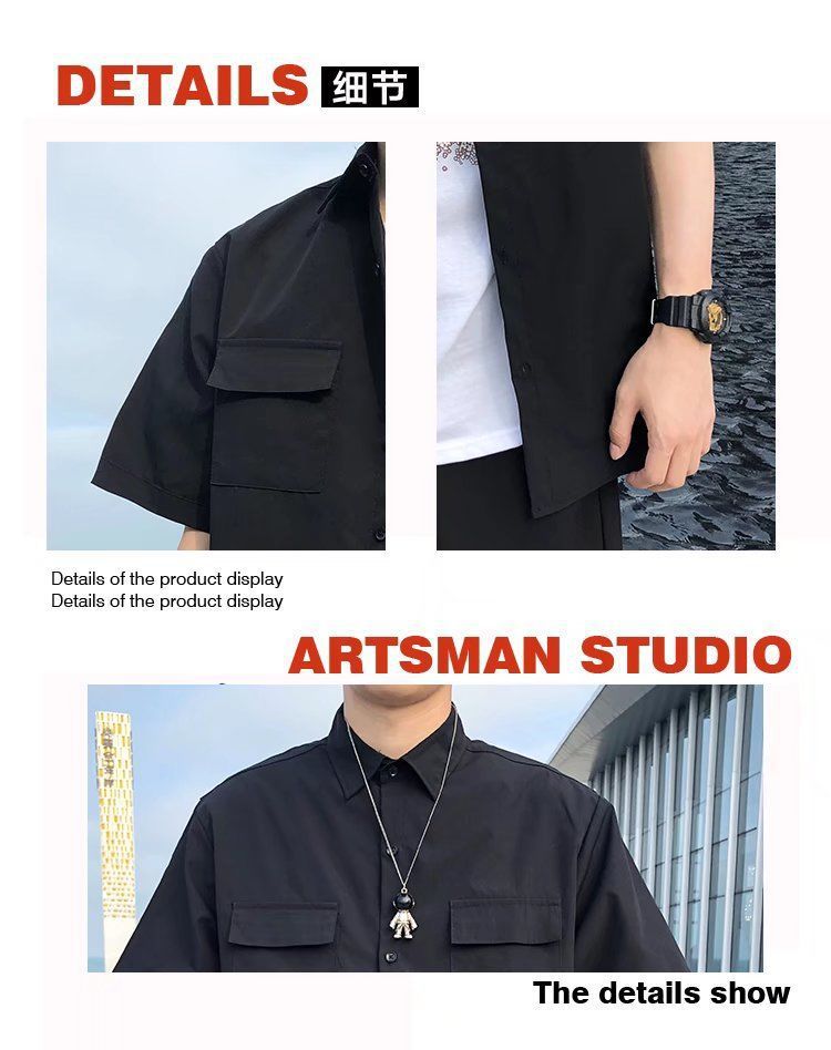 툴링 스타일 셔츠 남자 반팔 여름 느슨한 홍콩 스타일 트렌디 인 올 매치 솔리드 컬러 얇은 포켓 반소매 탑