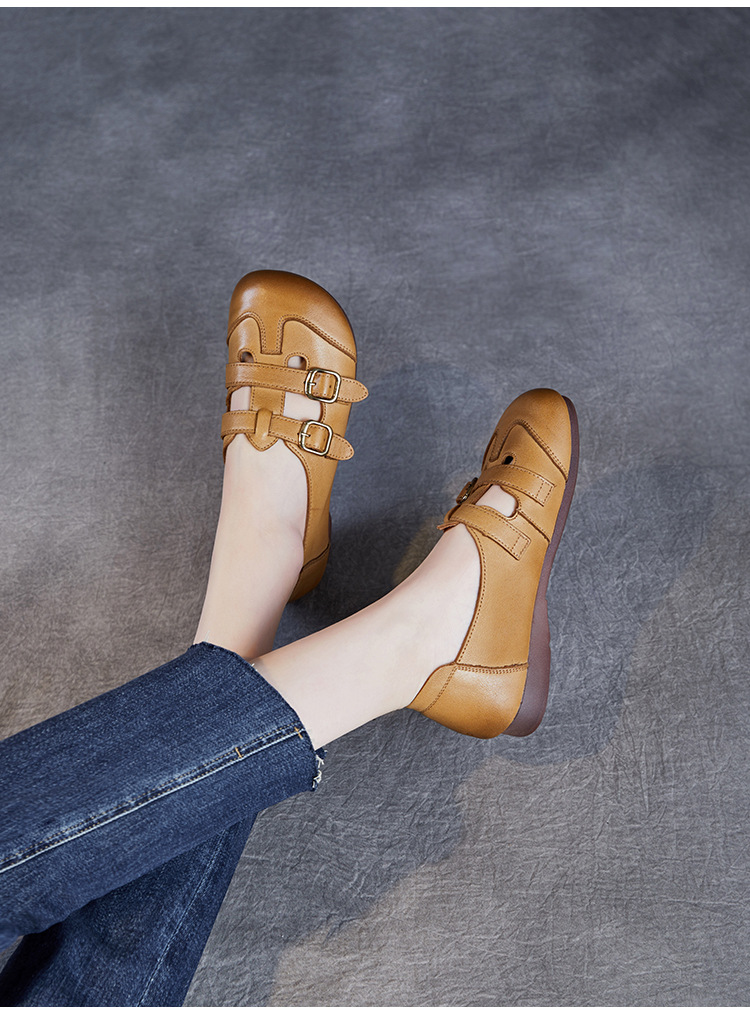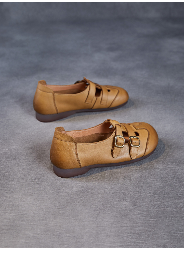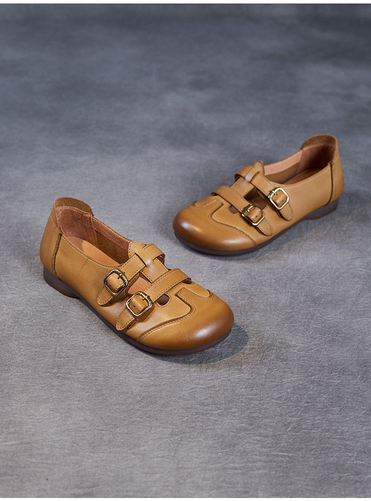 미국 컬러 2025 년 봄과 여름 새로운 정품 가죽 Mary Jane 플랫 캐주얼 신발 둥근 발가락 부드러운 바닥 벨트 버클 여성 신발