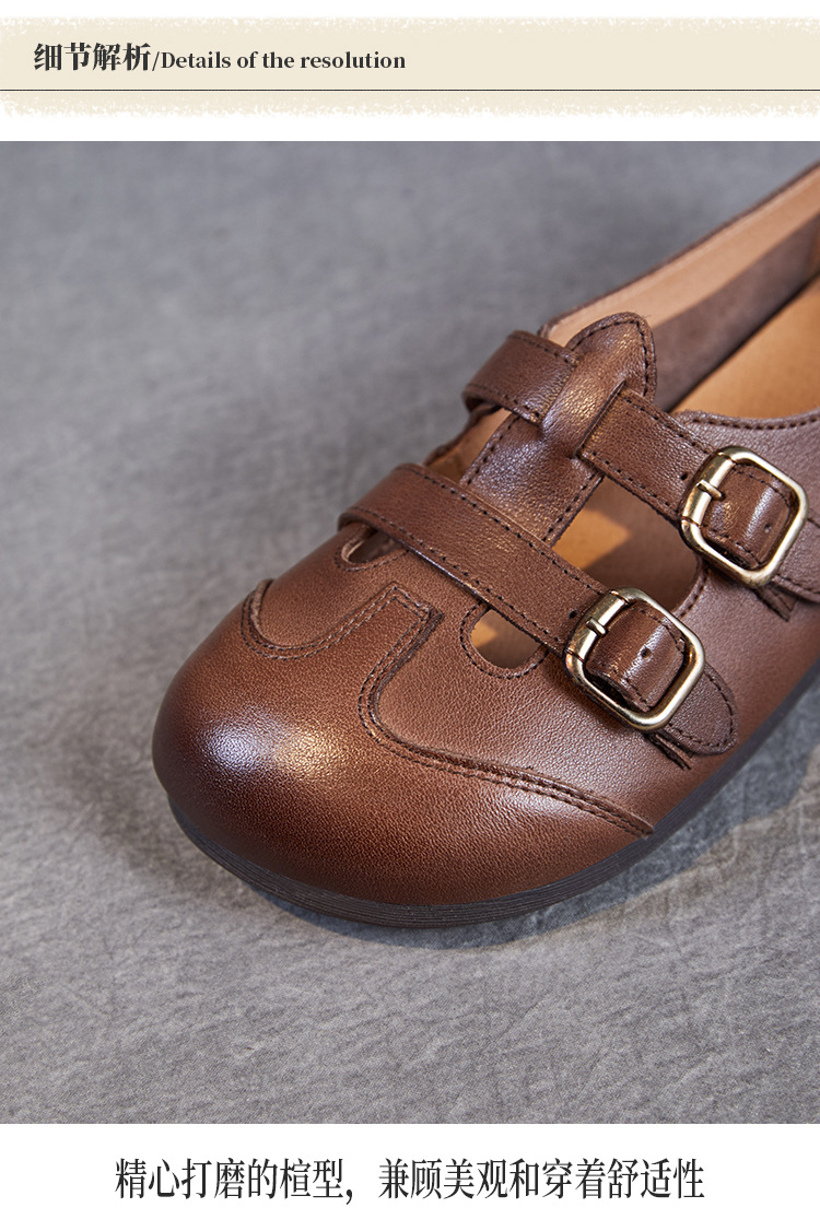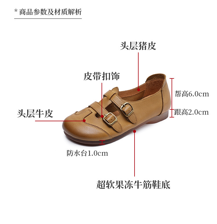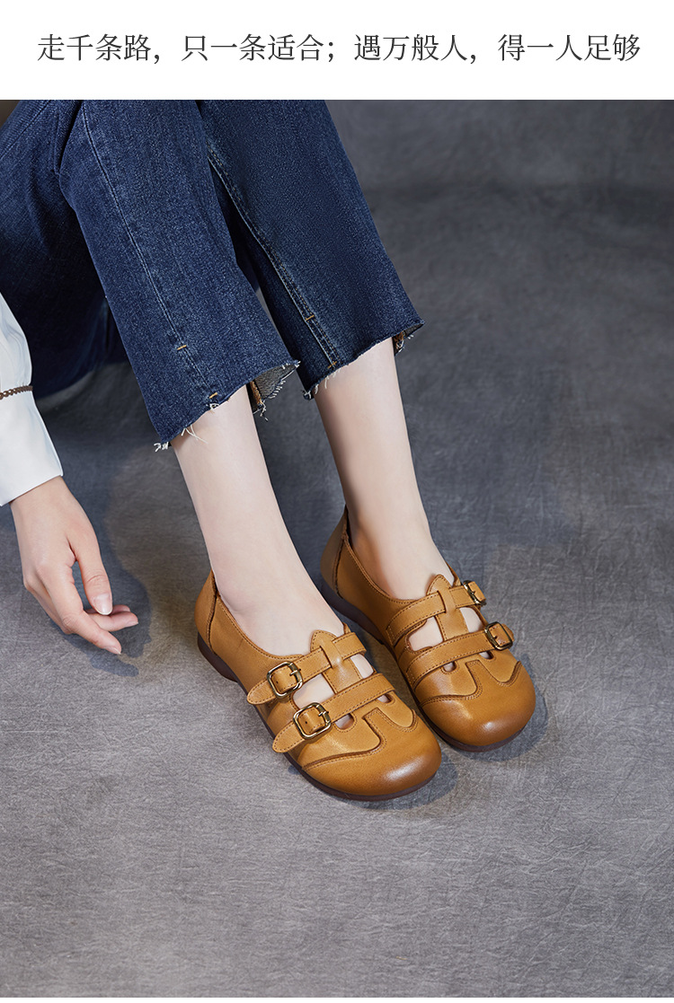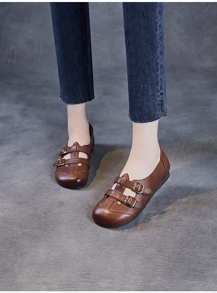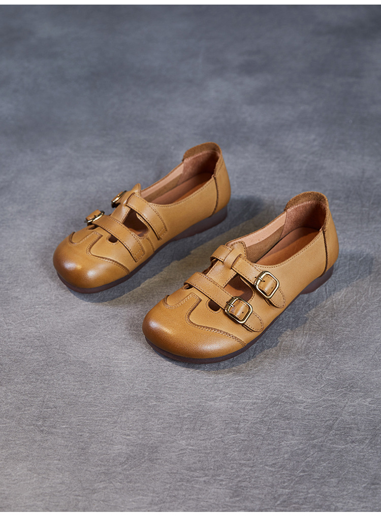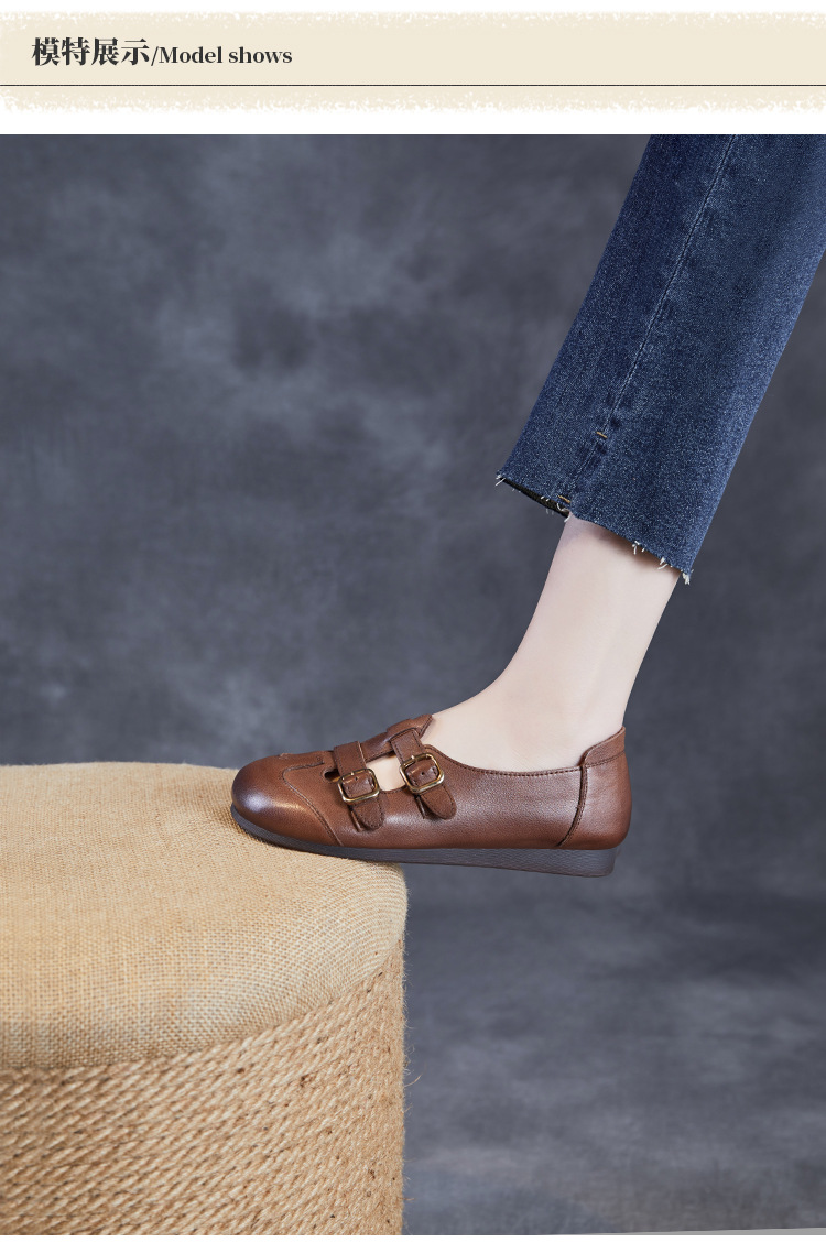 미국 컬러 2025 년 봄과 여름 새로운 정품 가죽 Mary Jane 플랫 캐주얼 신발 둥근 발가락 부드러운 바닥 벨트 버클 여성 신발스토어 가기