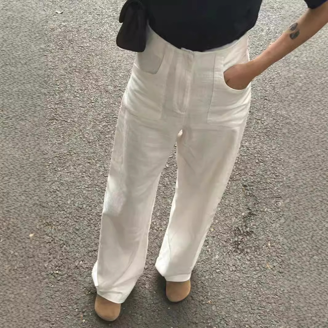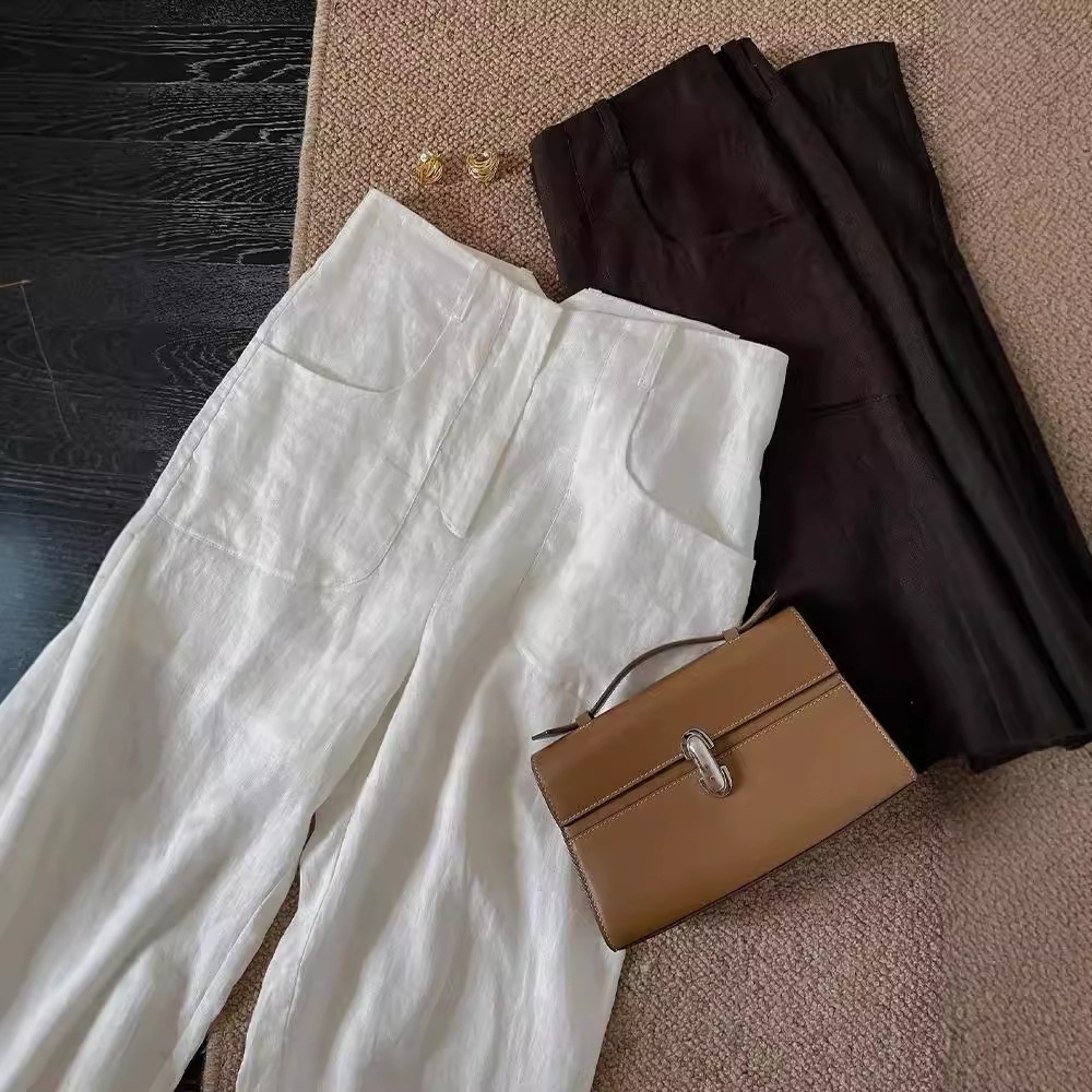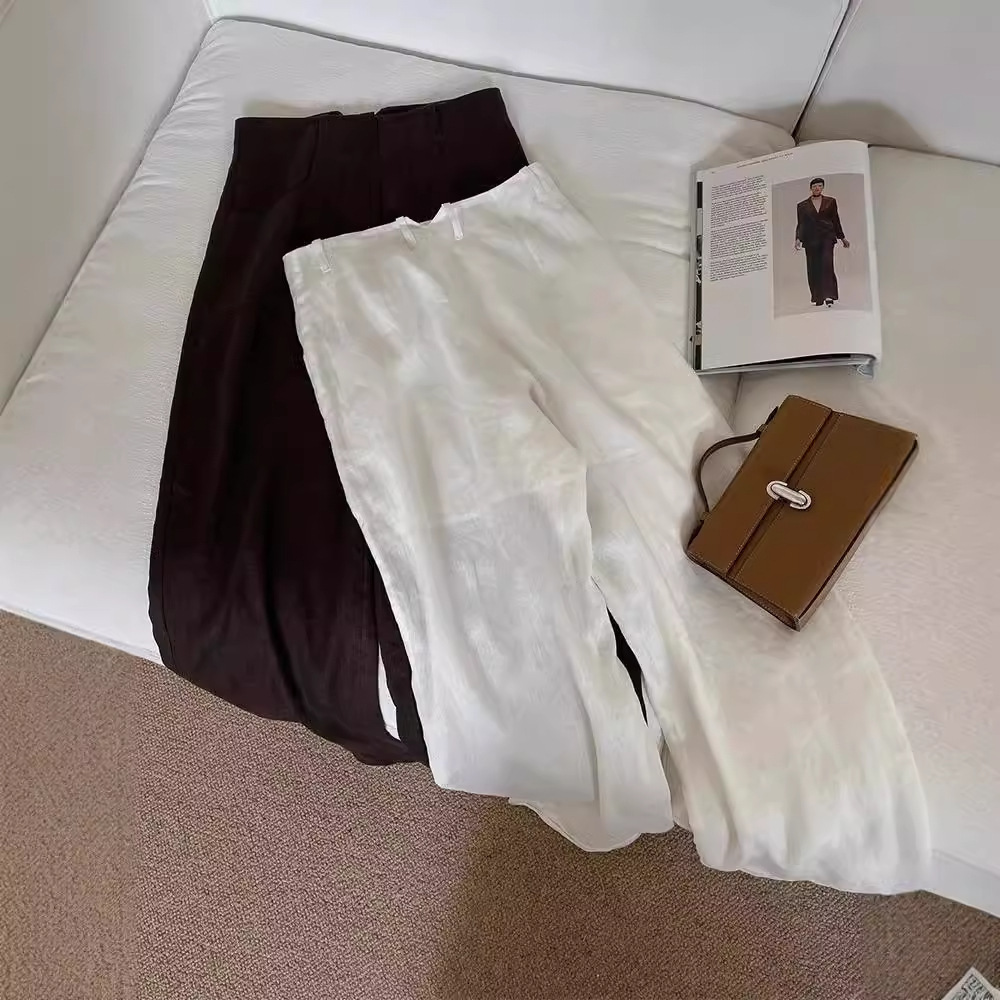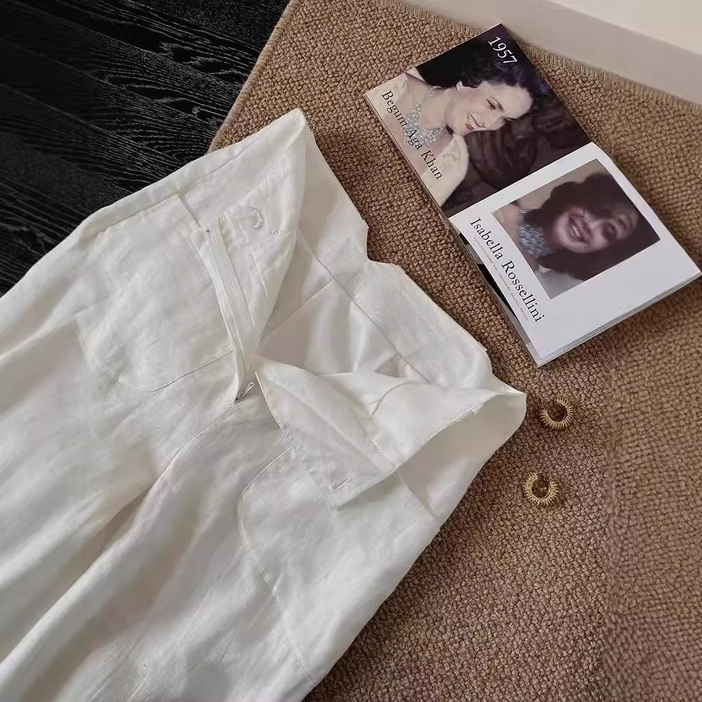 墙裂CHAO级推荐!ins爆火款|米白色苎麻镰刀裤女小个子垂感休闲裤