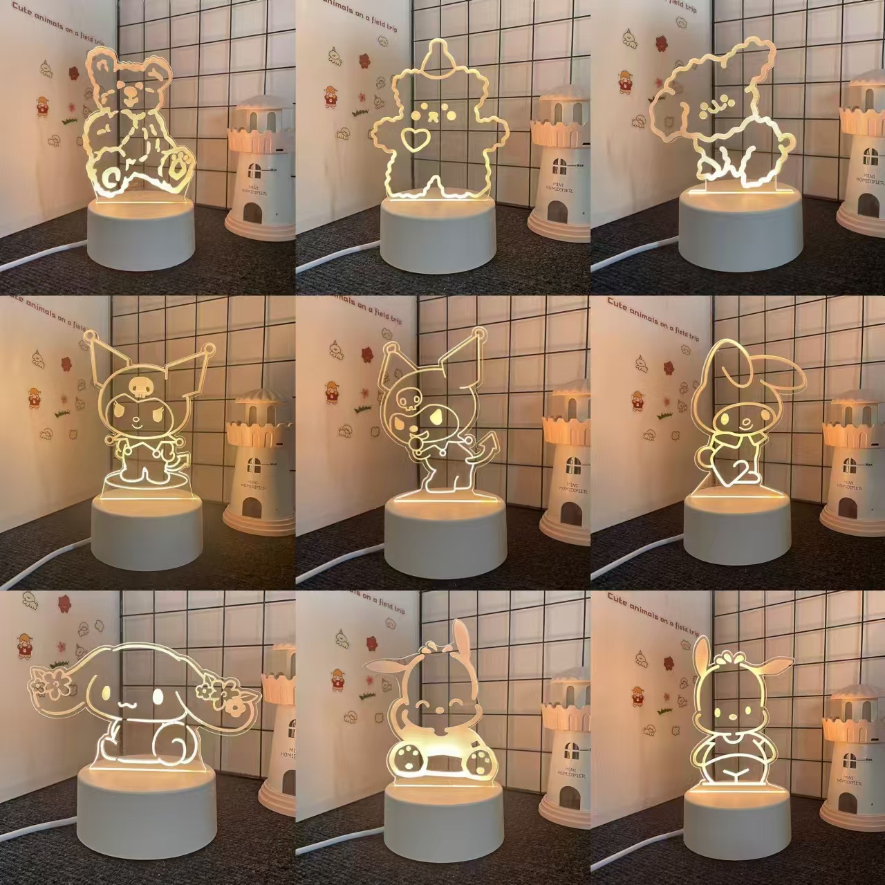 창조적 인 어린이 선물 산리오 쿨로 미 3d 나이트 라이트 장식품 만화 귀여운 로고 학생 선물 책상 램프스토어 가기