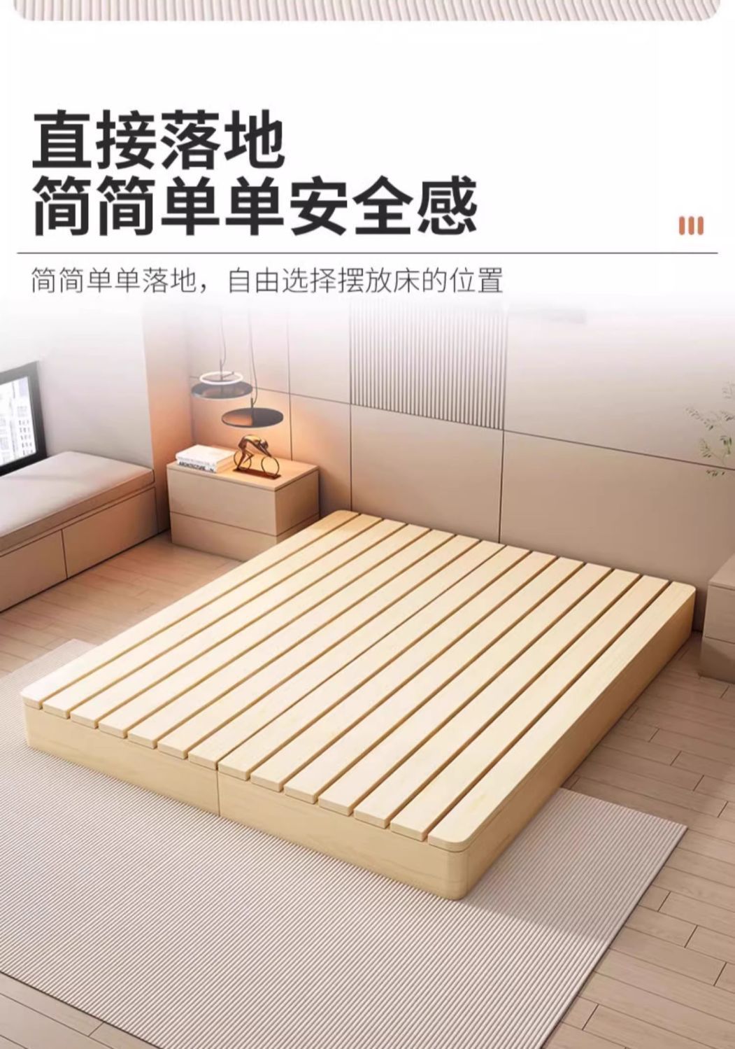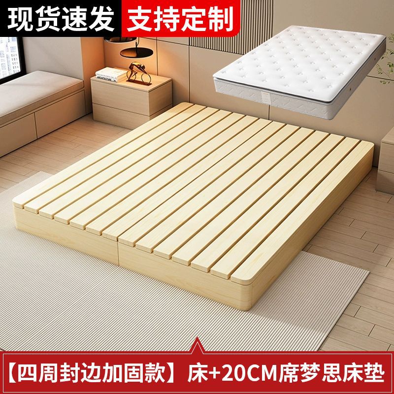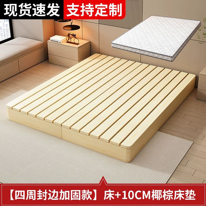 단단한 나무 다다미 침대 프레임 없음 침대 머리 통기성 수분 방지 라이 해골 렌탈 하우스 일본 스타일 낮은 침대 홈스테이 스타일 플로어 침대