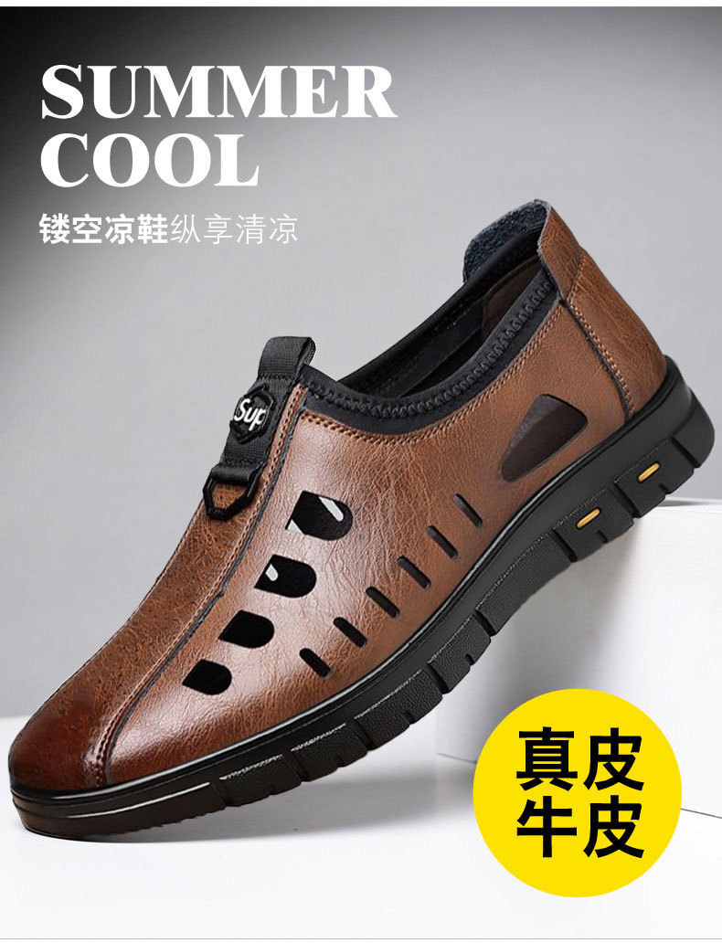 여름 새로운 스타일 통기성 중공 가죽 신발 구멍 신발 남성 캐주얼 신발 샌들 비즈니스 영국 가죽 신발 남성
