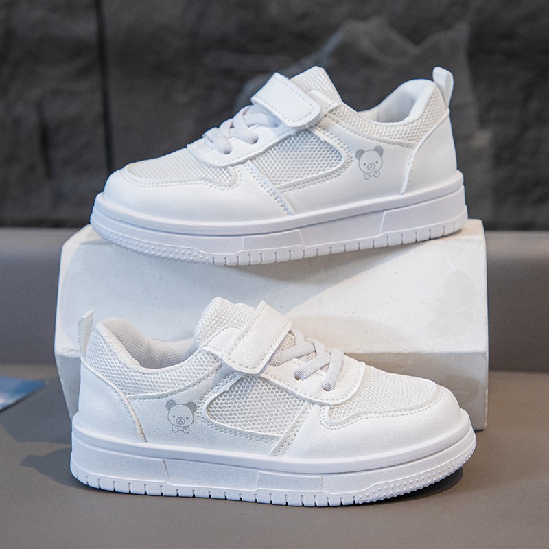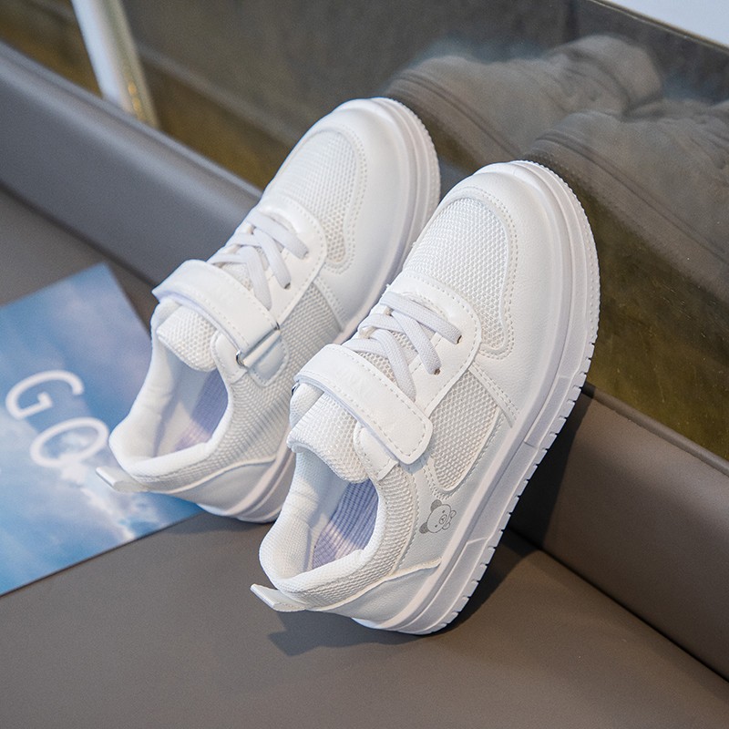 어린이 작은 흰색 신발 2025 봄과 가을 새로운 메쉬 통기성 소년 흰색 운동화 소녀 캐주얼 신발 조수스토어 가기