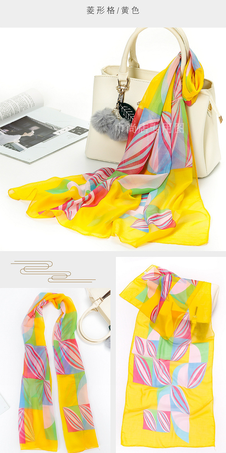 새로운 여름 중국 스타일 선스크린 쉬폰 작은 실크 스카프 여름 경량 통기성 다이아몬드 격자 무늬 인쇄 여성을위한 모든 경기 스카프스토어 가기