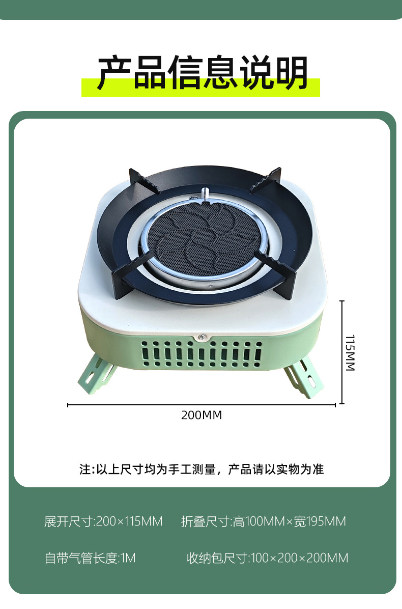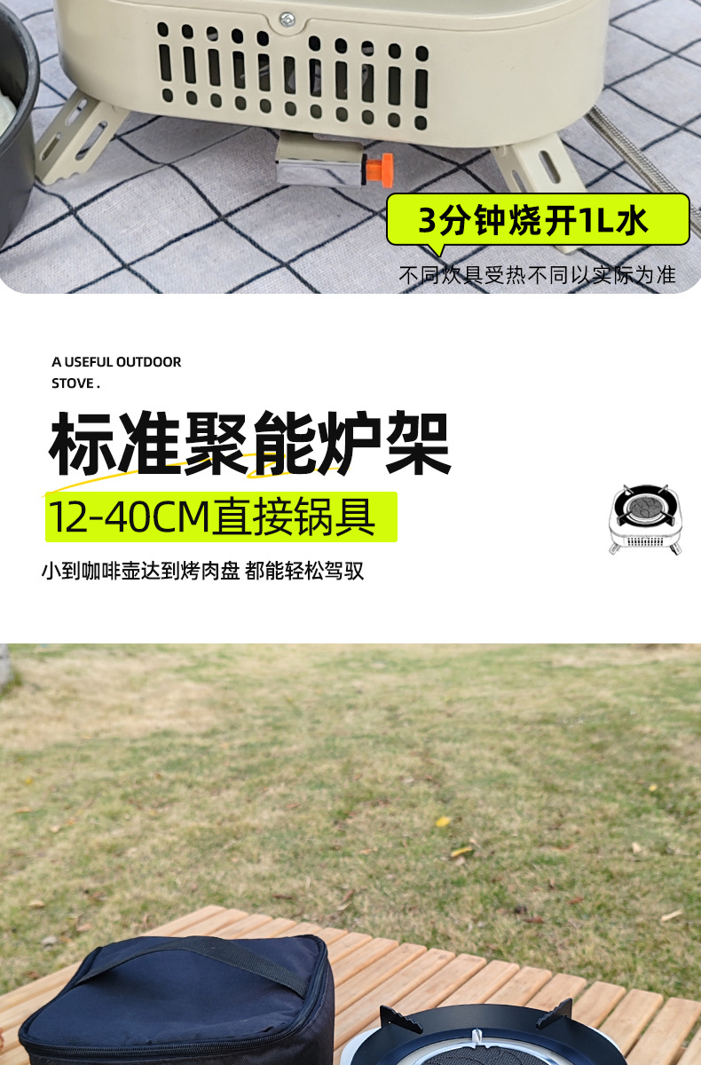 仅在户外使用,避免在封闭空间使用,并确保在平稳的表面使用,保持通风,不要靠近帐篷等易燃物,使用后确保火源熄灭,清洁后妥善保管,严格按照说明书操作使用。