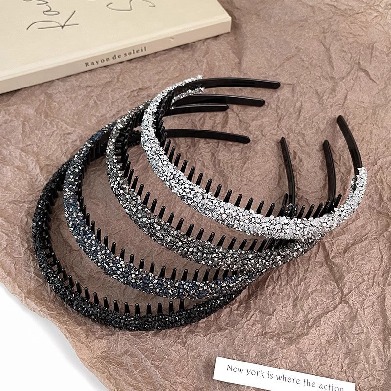 고급 라인 스톤 헤어 밴드 여성 헤어 베일 머리띠 치아 미끄럼 방지 헤어 액세서리 올 매치 헤어핀스토어 가기