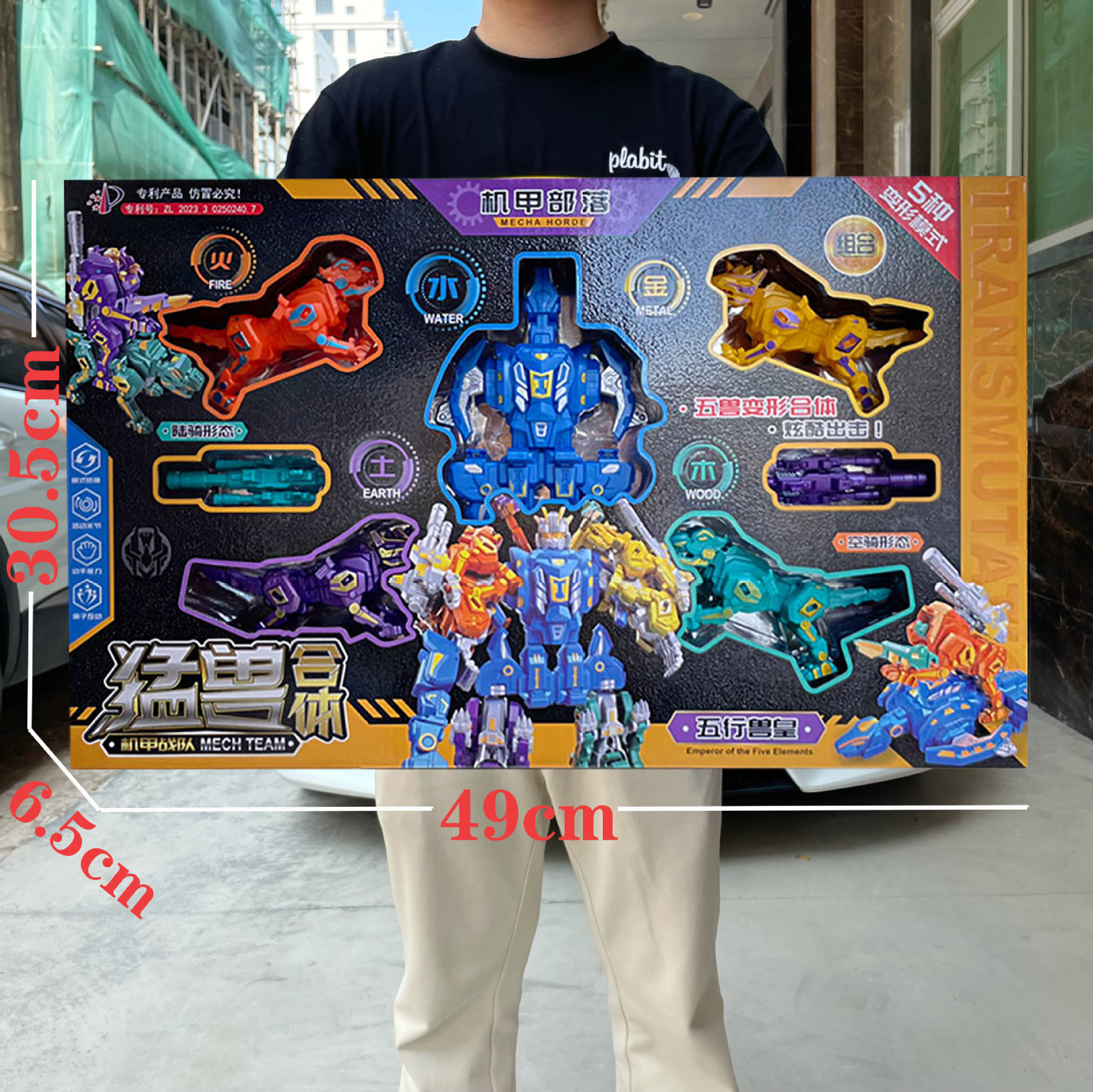 어린이 소년 메카 동맹 5 바디 변형 로봇 모델 장난감 푸시 기관 등록 선물 상자스토어 가기