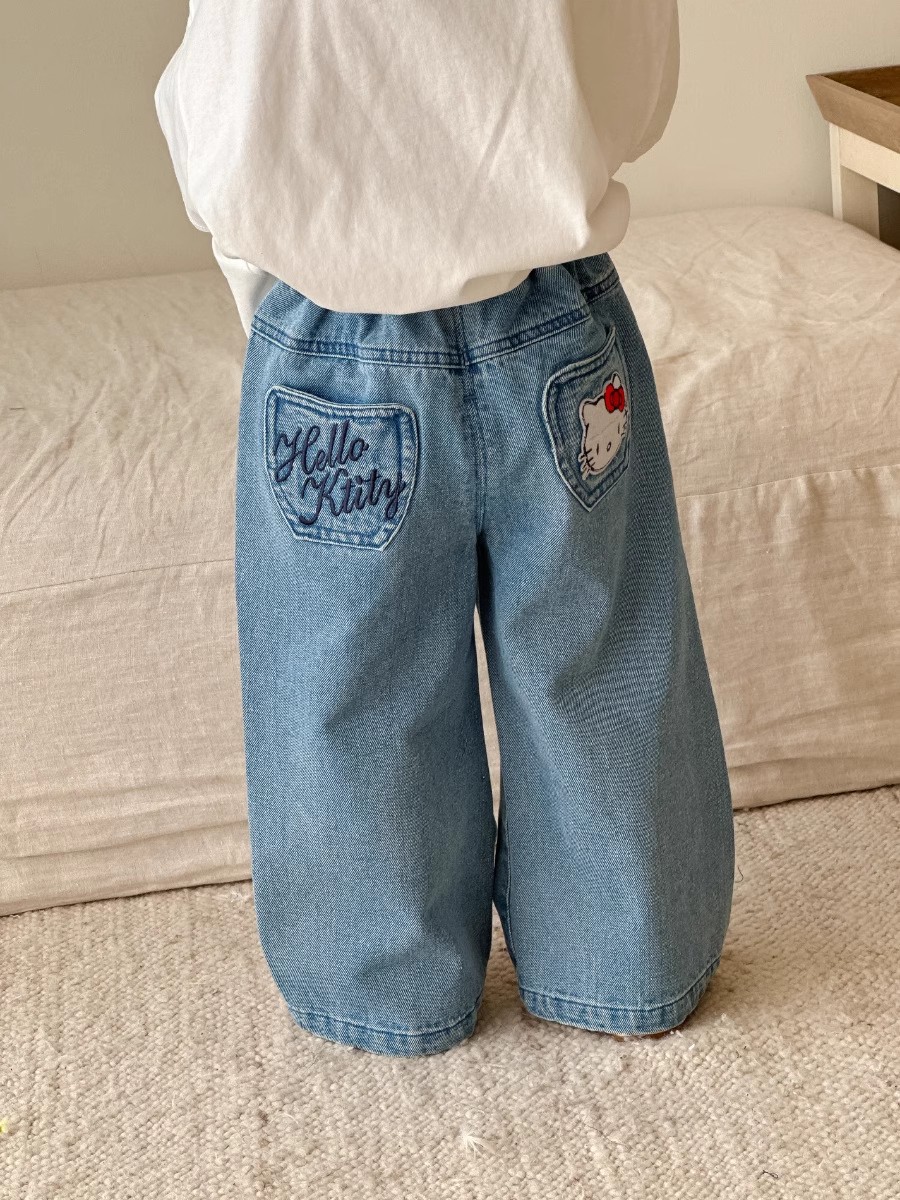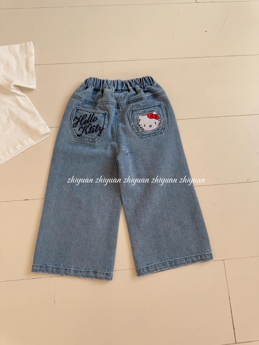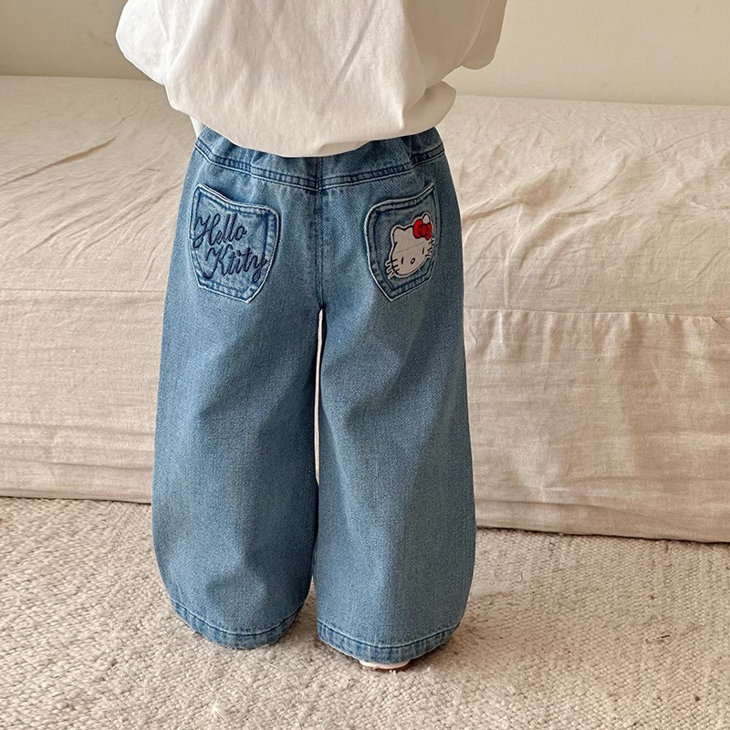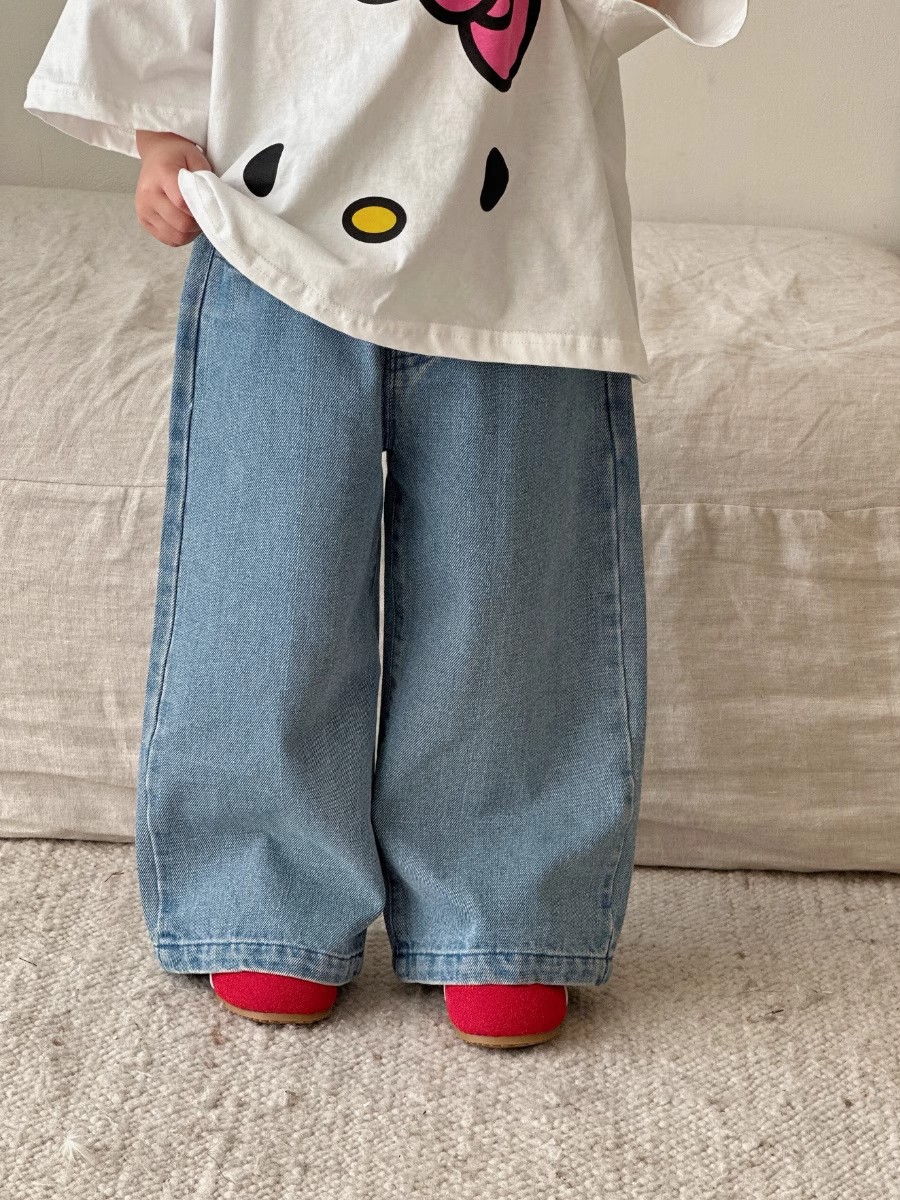 소녀 데님 넓은 다리 바지 봄과 가을 2025 새로운 대형 어린이 스트레이트 바지 느슨한 캐주얼 청바지 봄 착용스토어 가기