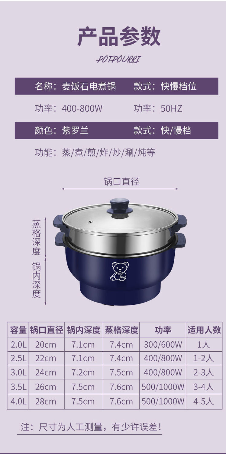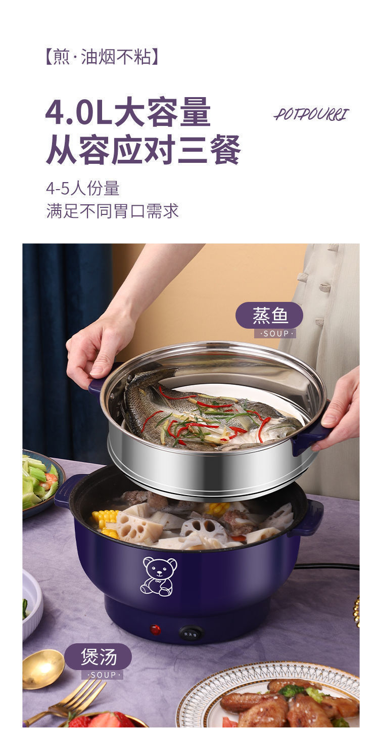 기숙사 요리 쌀과 요리 냄비 전기 냄비 비 스틱 팬 가정용 작은 전기 냄비 다기능 전기 냄비 전기 팬