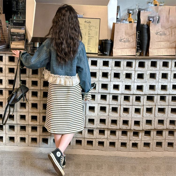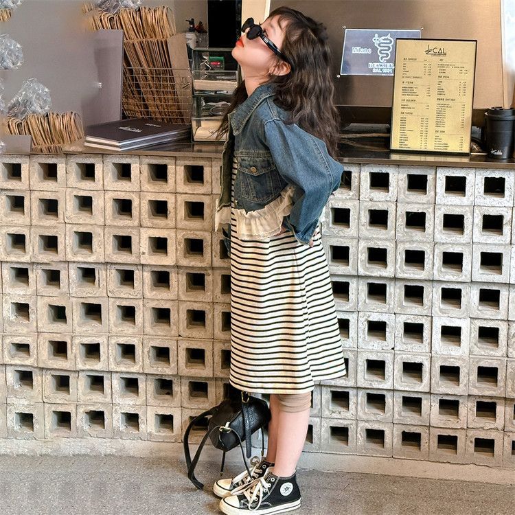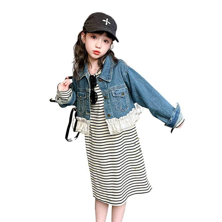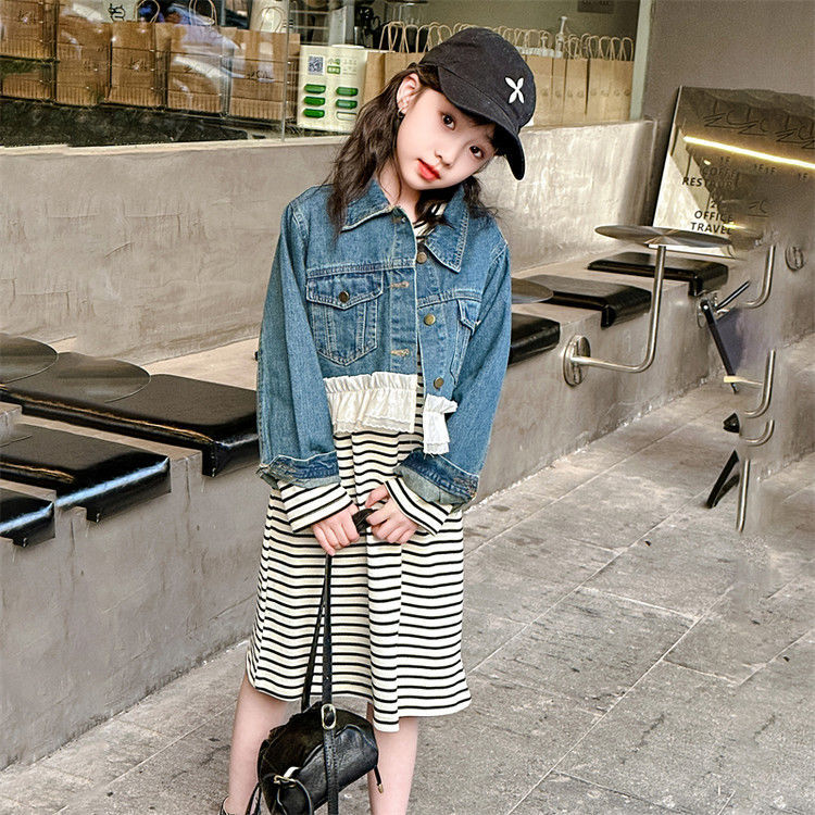 소녀의 봄과 가을 코트 원피스 2025 봄 새로운 세트 서양식 소녀 재킷 투피스 스커트스토어 가기