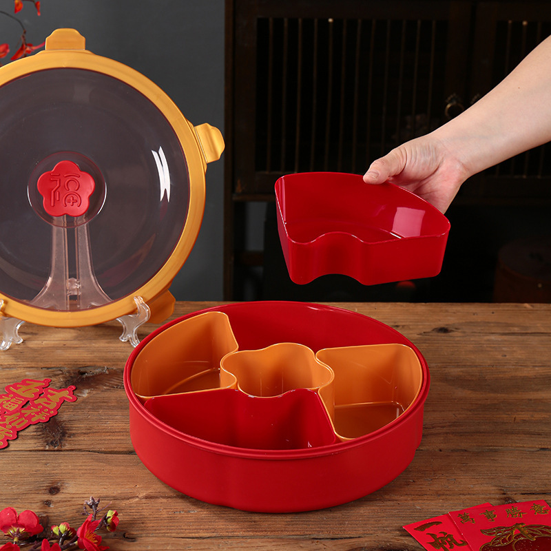Xiaojian 8194 구획 둥근 사탕 상자 플라스틱 붉은 말린 과일 상자 가정 새해 스낵 상자