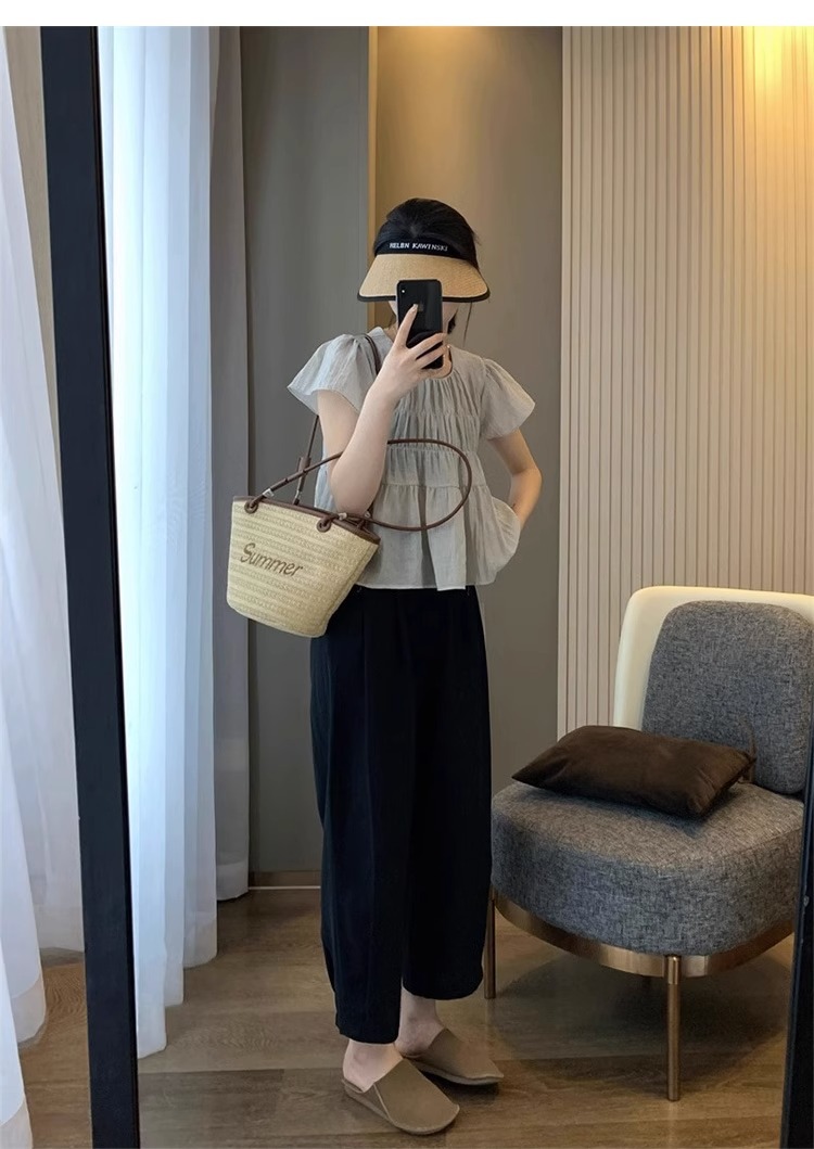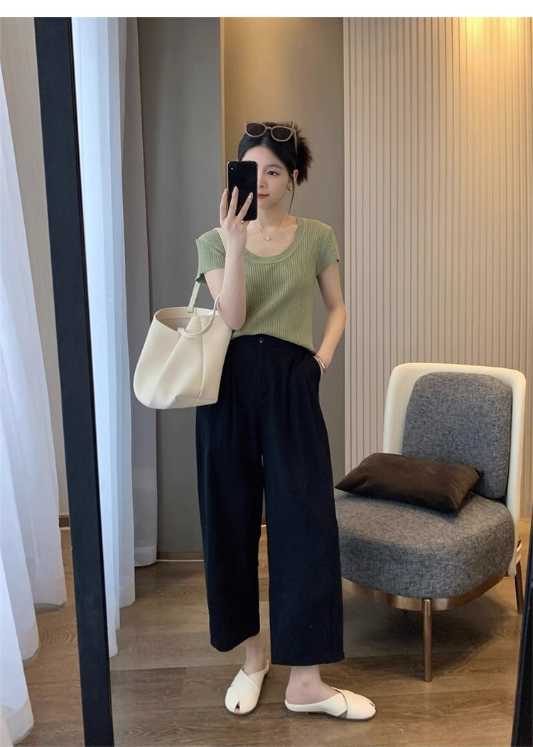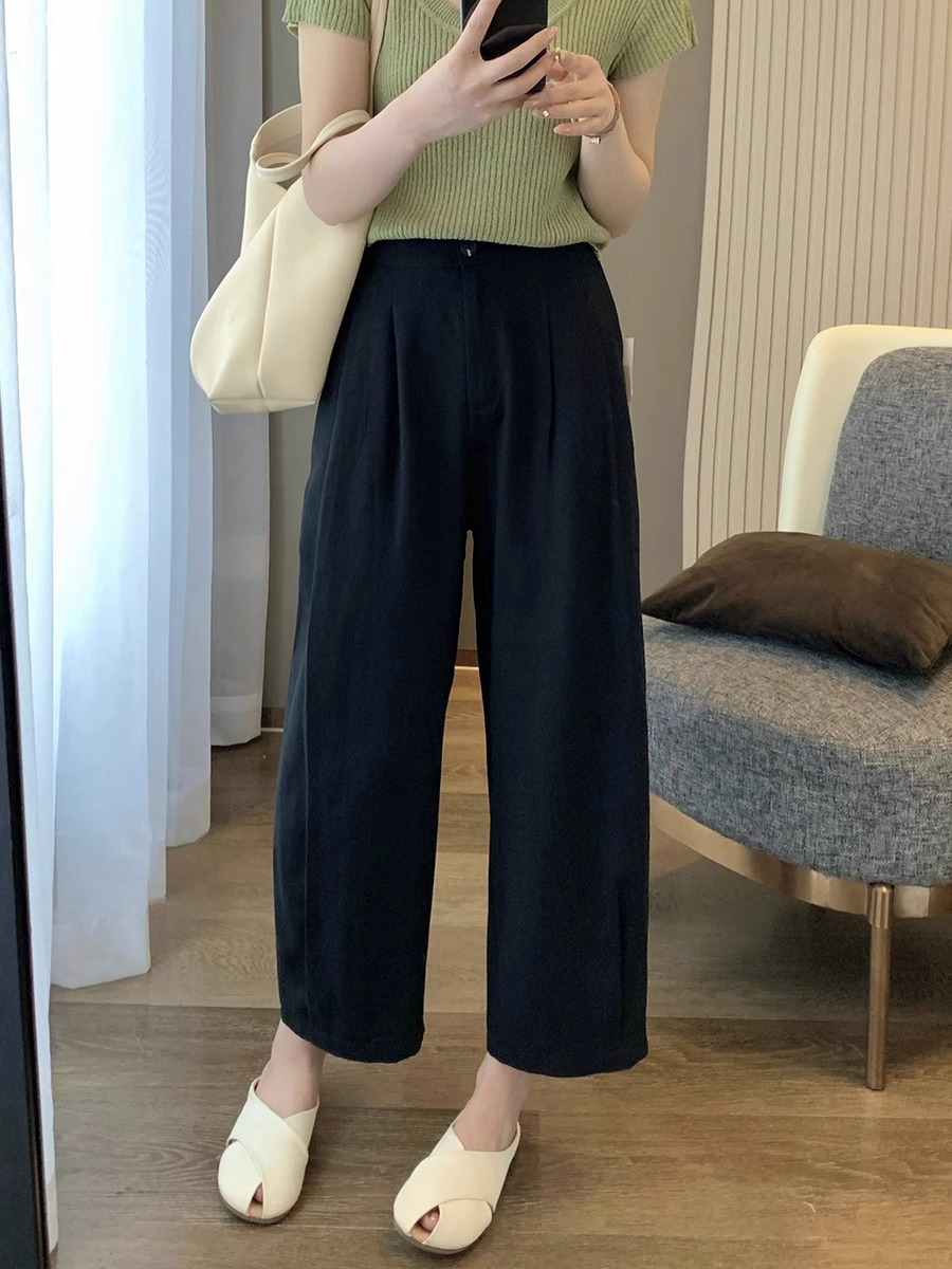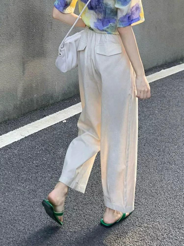 흰색 높은 허리 코튼 린넨 세트 캐주얼 바지 여성용 여름 스트레이트 씬 린넨 넓은 다리 발목 길이 바지 라미 바지스토어 가기