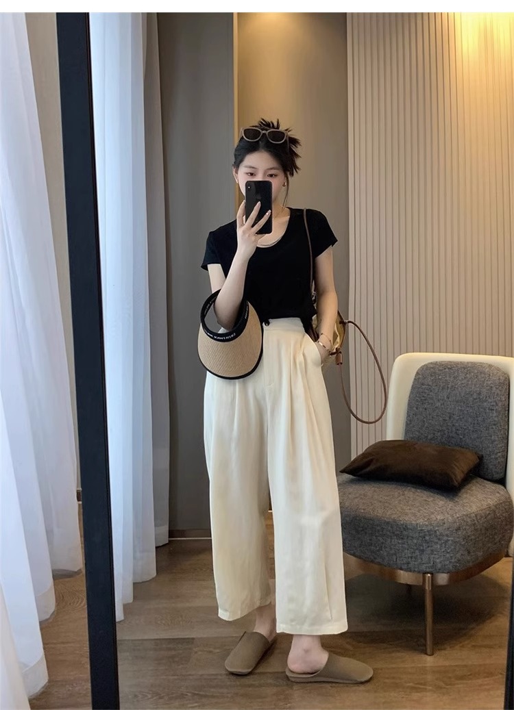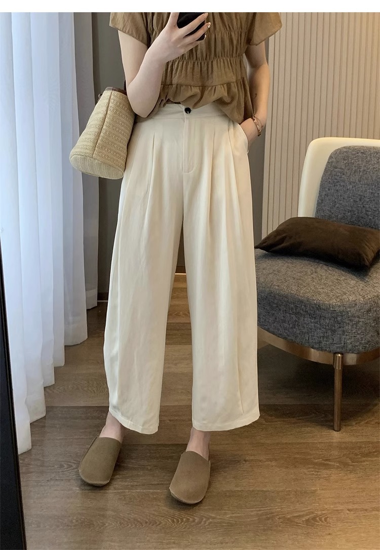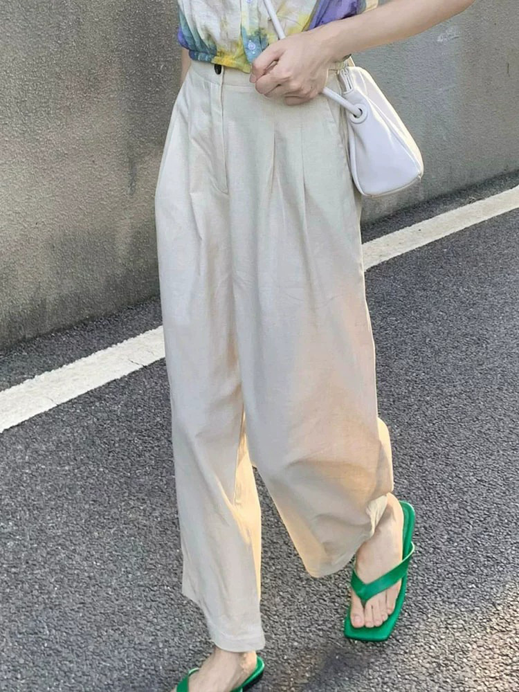 白色高腰棉麻西装休闲裤女夏季夏直筒薄款亚麻阔腿九分裤苎麻裤子