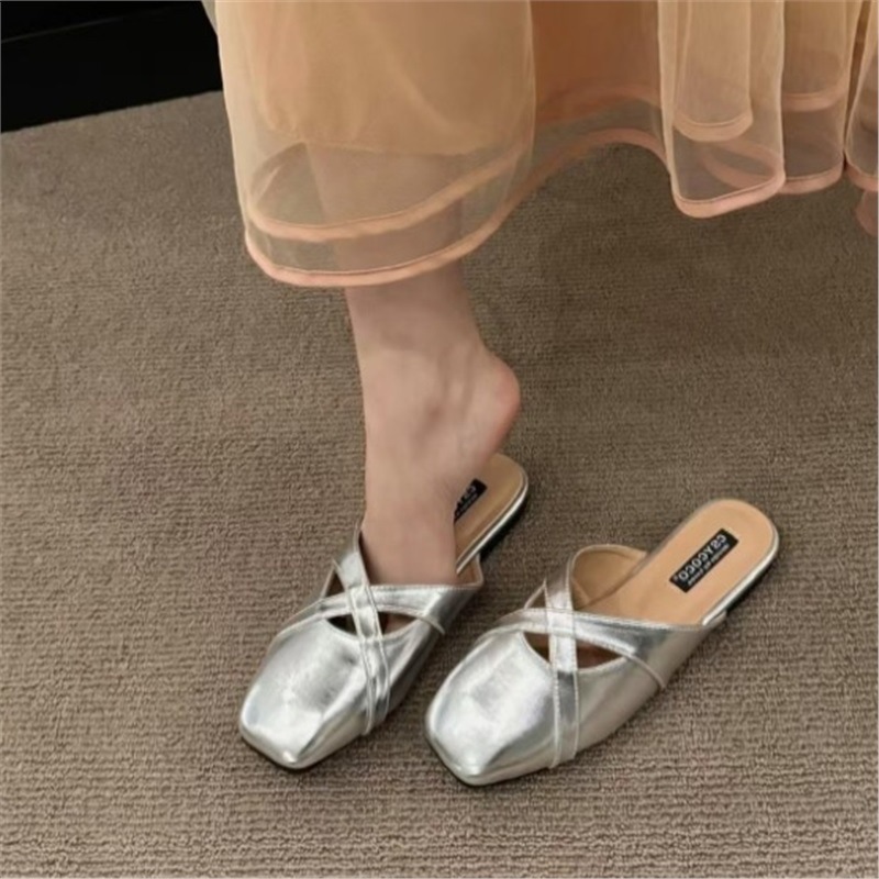 여자 아우터웨어 레트로 올매치 스퀘어 토를위한 프랑스 스타일 오픈 발가락 샌들 한국식 크로스 벨트 얕은 오픈 홀 오픈 토 하프 드래그