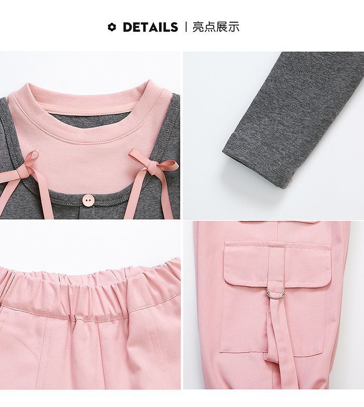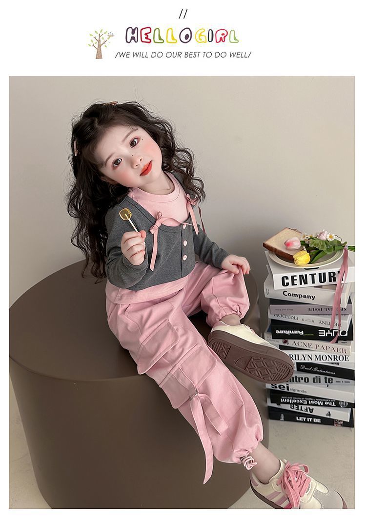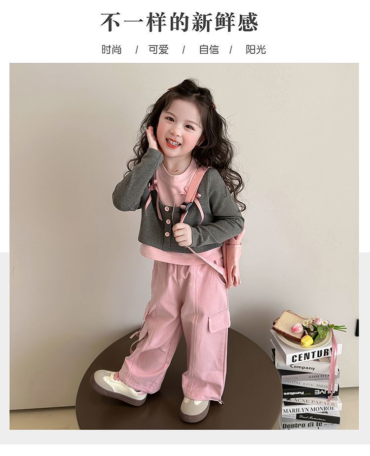 소녀의 봄과 가을 세트 2025 새로운 여성의 보물 봄 캐주얼 화이트 가짜 투피스 활 탑 크록 바지스토어 가기