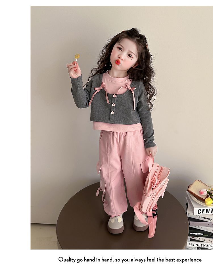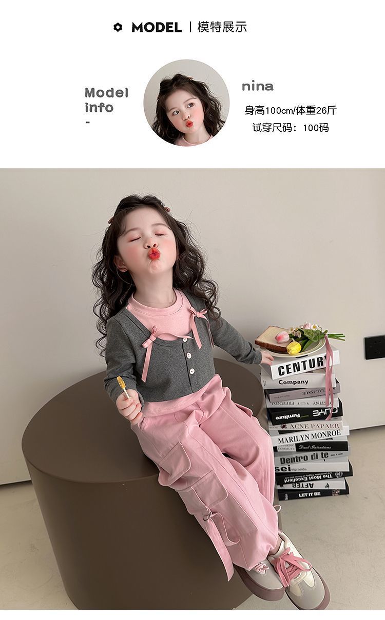 소녀의 봄과 가을 세트 2025 새로운 여성의 보물 봄 캐주얼 화이트 가짜 투피스 활 탑 크록 바지