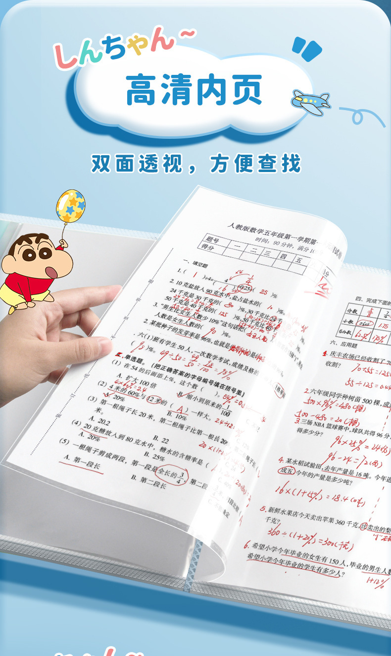 크레용신짱 공동브랜드 a4 정보집 시험지 수납책 가방 정리 투명 삽입악보홀더 학생상스토어 가기