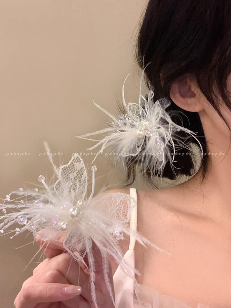 • 화이트 슈퍼요정 깃털 머리핀-싱글