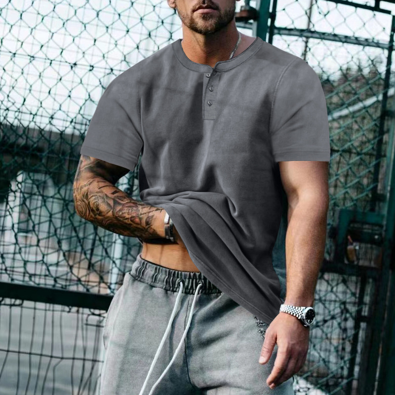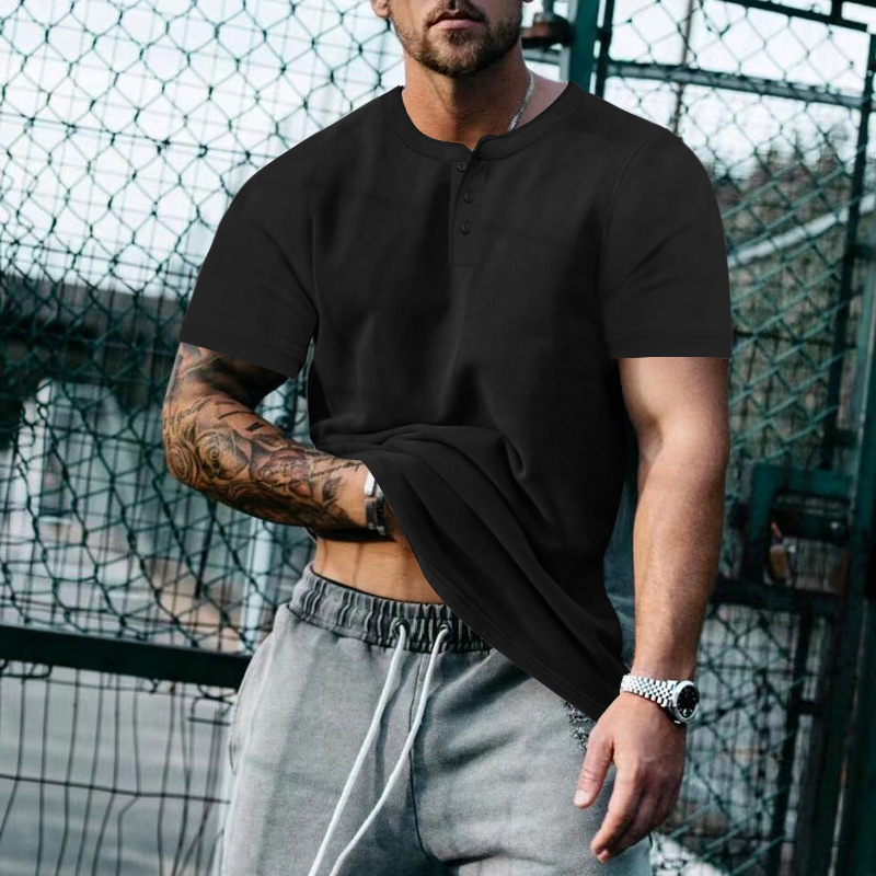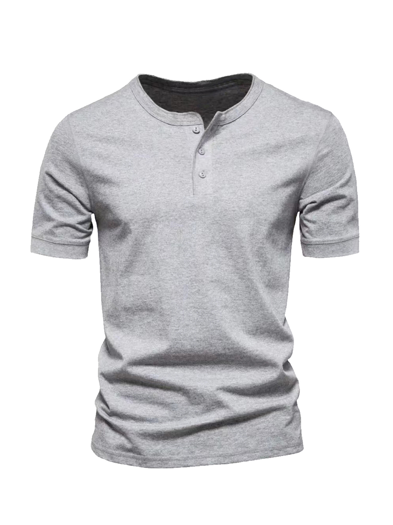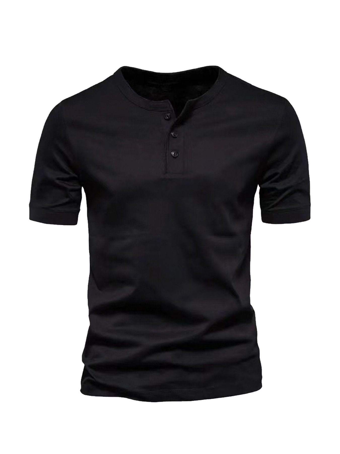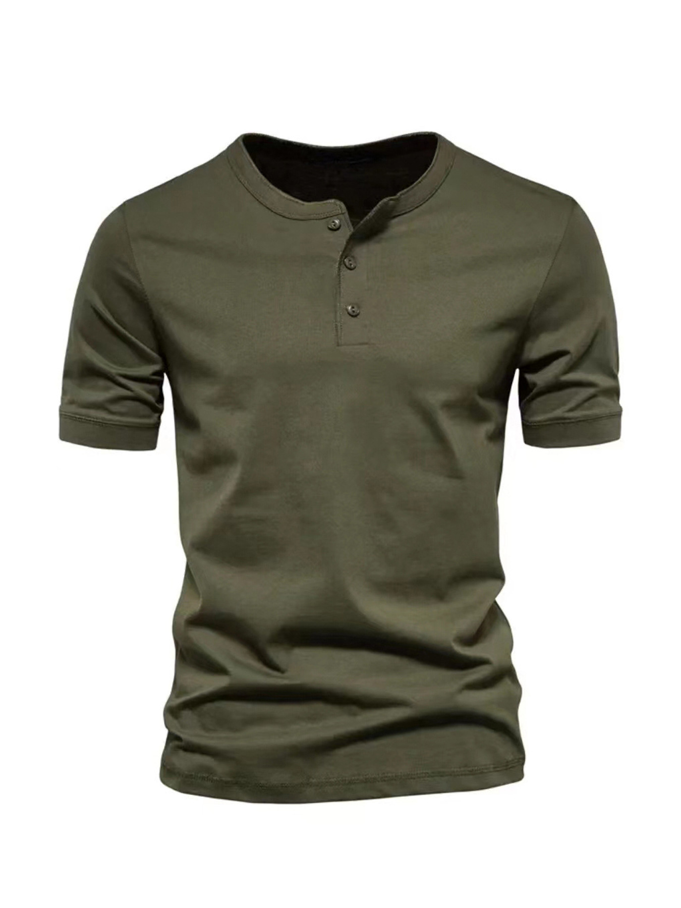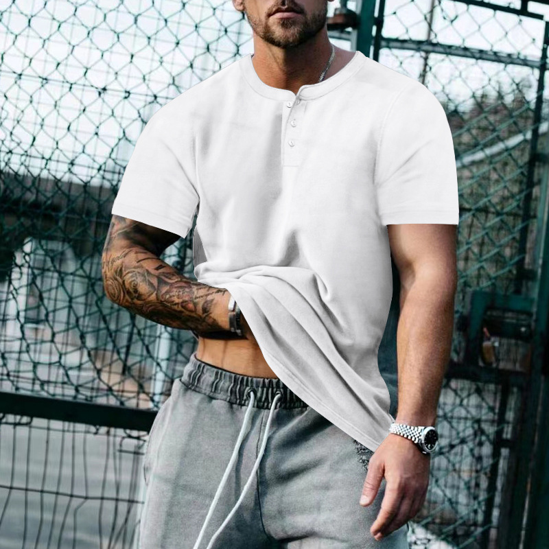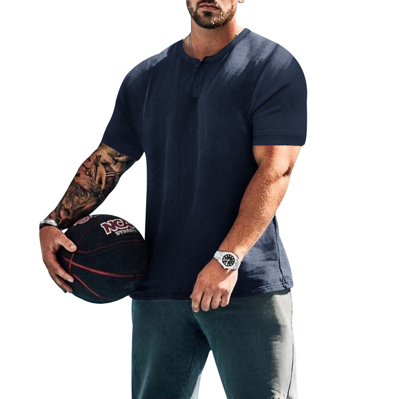 대외 무역 국경 뉴 캐주얼 남성 소원 솔리드 컬러 스포츠베이스 셔츠 남자 헨리 라운드 넥 반팔 티셔츠