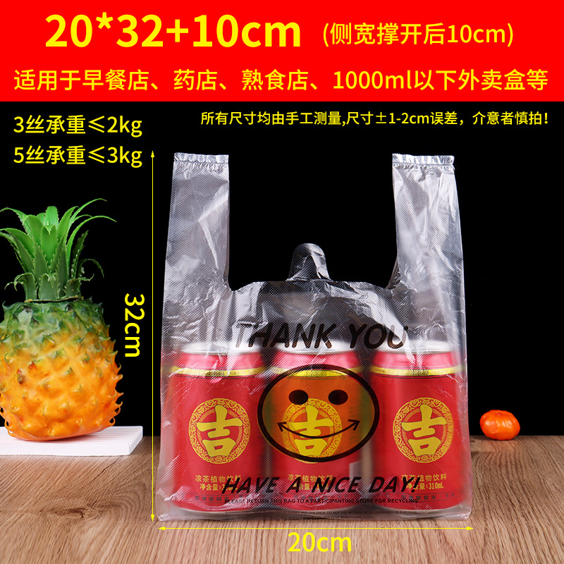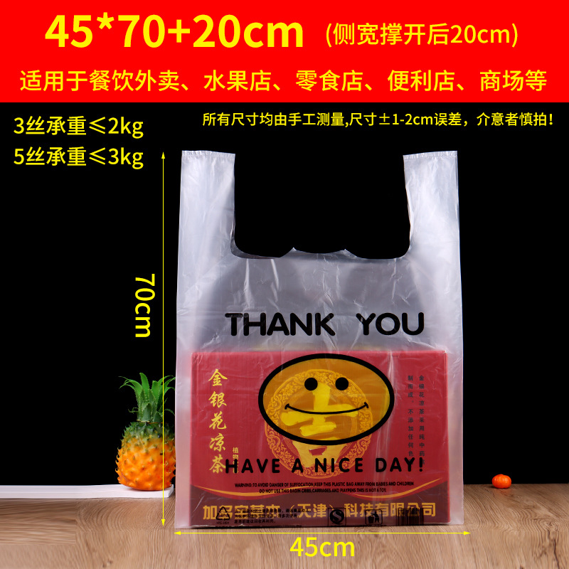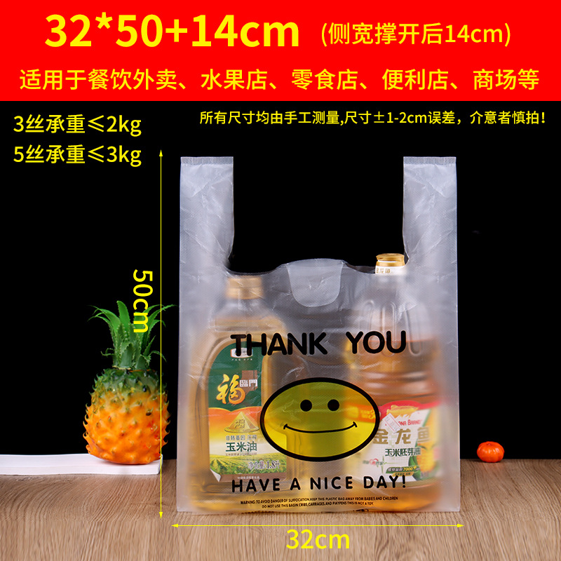 투명한 웃는 얼굴 플라스틱 가방 두꺼운 슈퍼마켓 과일 쇼핑백 노점 테이크아웃 포장용 휴대용 조끼형 편리한 가방