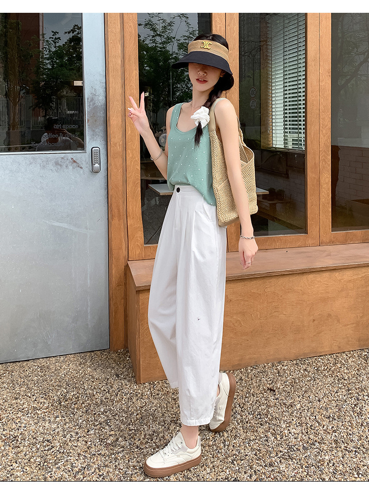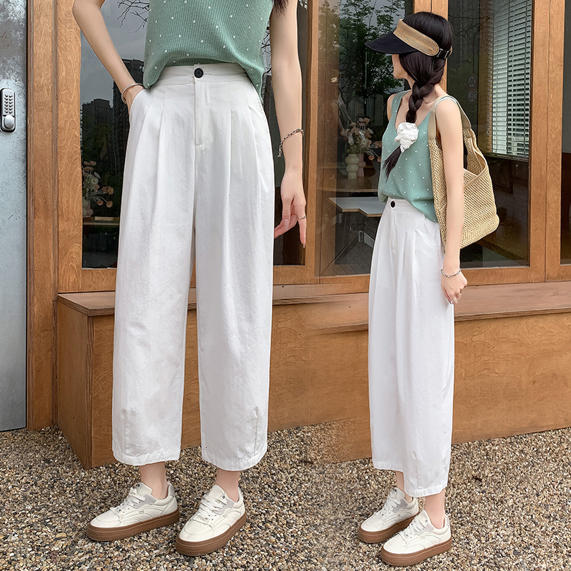 화이트 당근 바지 여성의 봄과 여름 새로운 도착 작은 봄과 가을 세탁 바지 스트레이트 9 포인트 할란 여자 바지