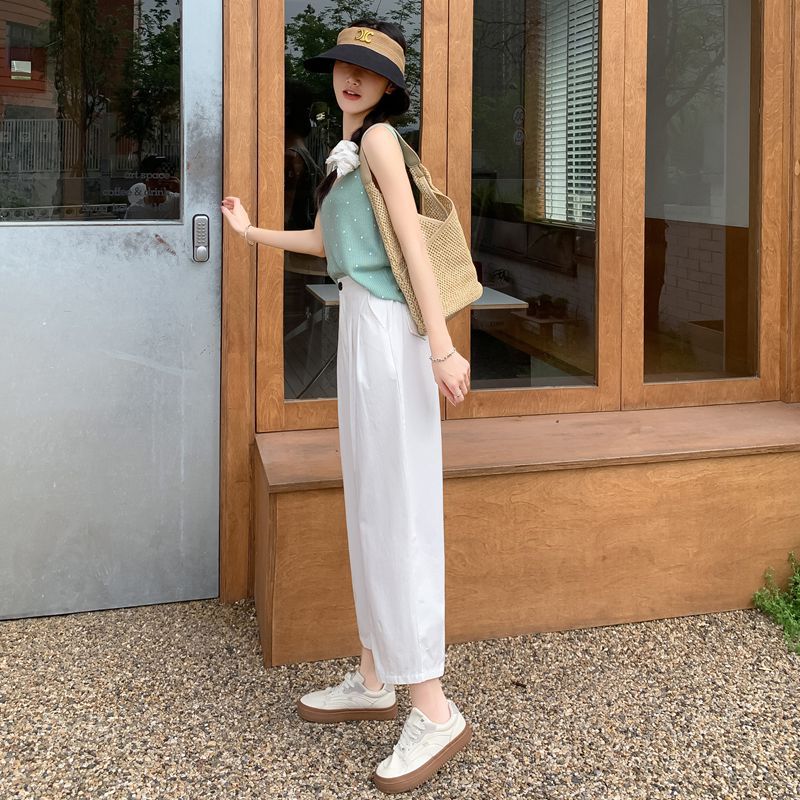 화이트 당근 바지 여성의 봄과 여름 새로운 도착 작은 봄과 가을 세탁 바지 스트레이트 9 포인트 할란 여자 바지스토어 가기