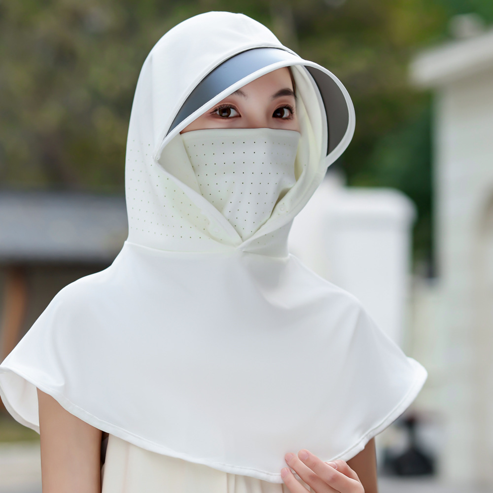 여름 얼음 실크 태양 모자 선 스크린 모자 어린이 얼굴 마스크 통합 UV 보호 마스크 승마 태양 모자