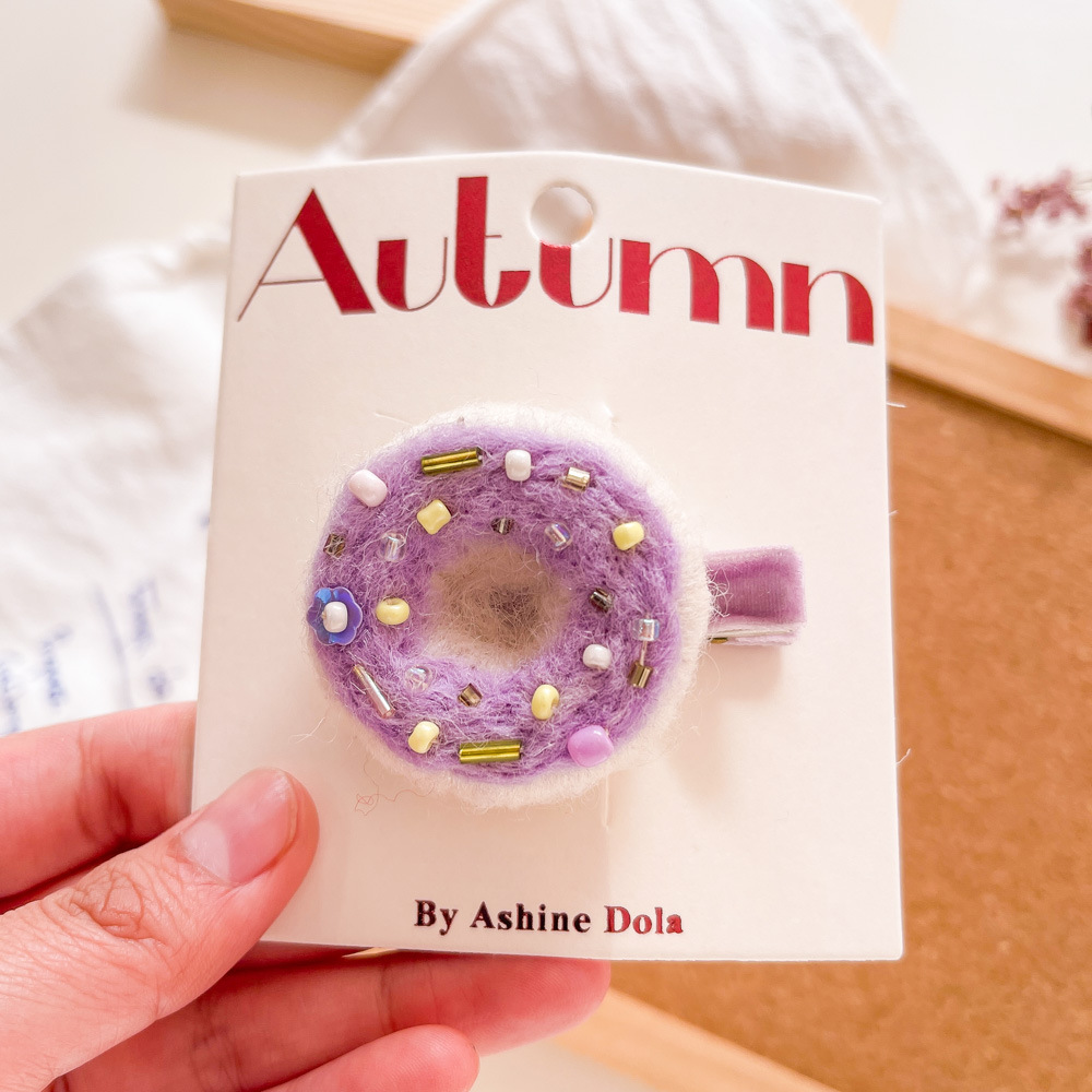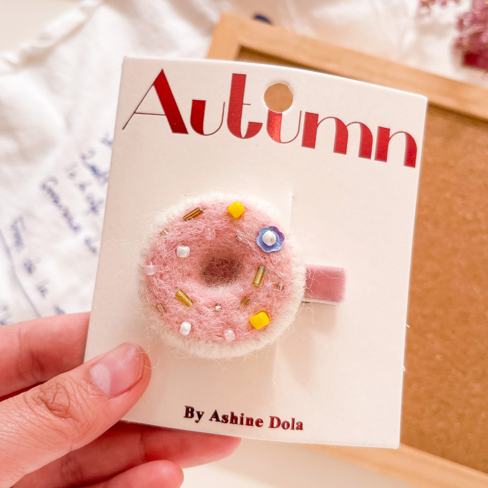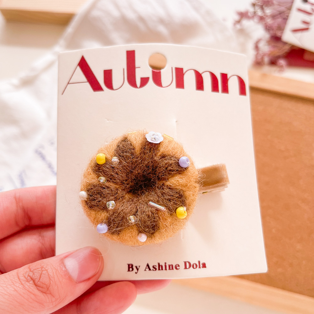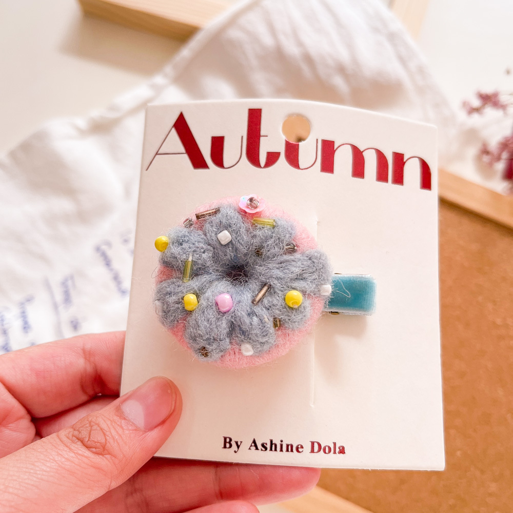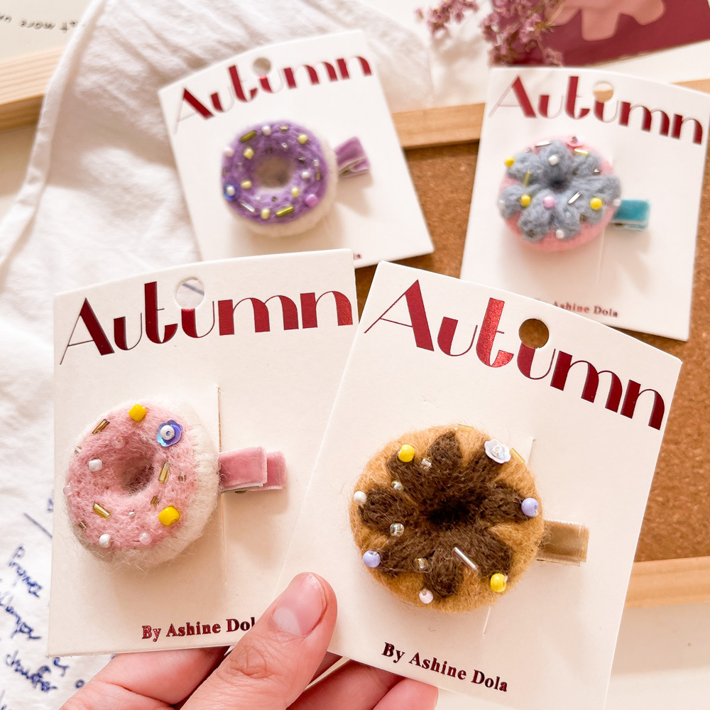 가을과 겨울 울 펠트 시뮬레이션 도넛 시어 비즈 어린이 헤어핀 귀여운 소녀 한국 덕빌 클립 소녀의 헤드웨어 카드