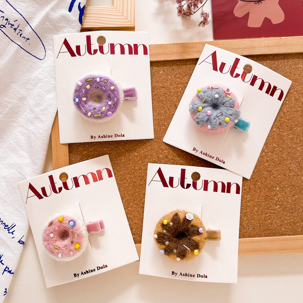가을과 겨울 울 펠트 시뮬레이션 도넛 시어 비즈 어린이 헤어핀 귀여운 소녀 한국 덕빌 클립 소녀의 헤드웨어 카드스토어 가기