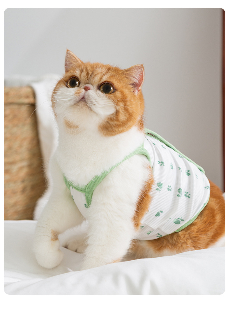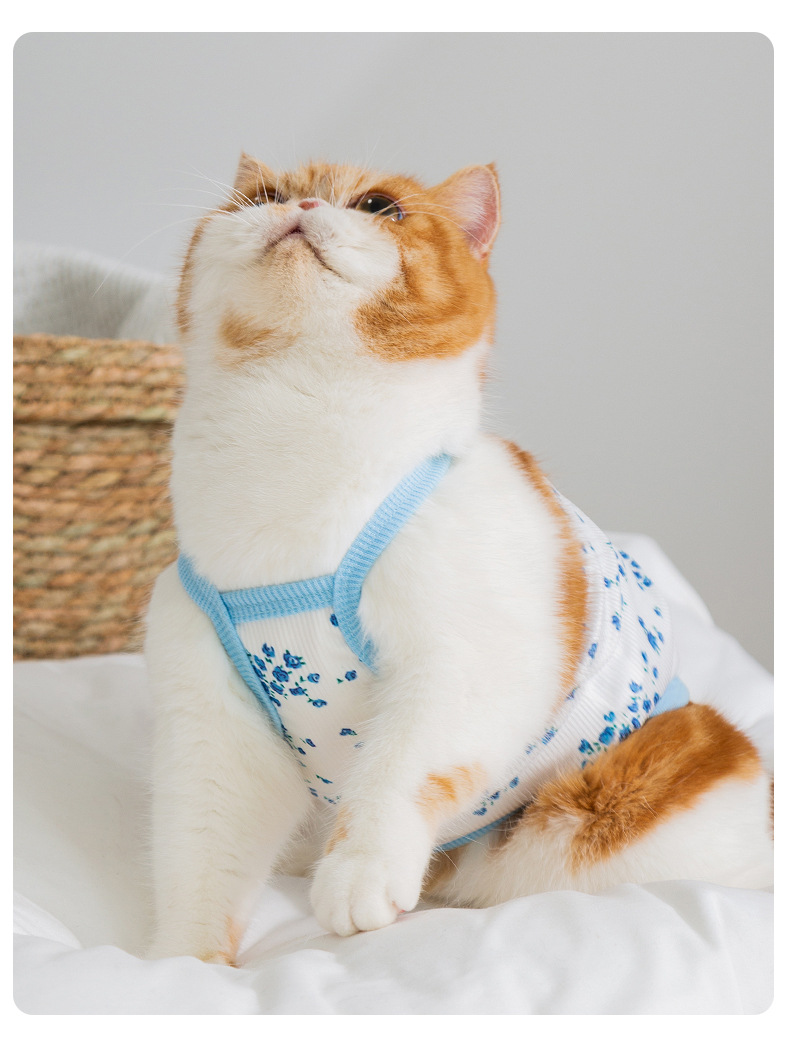 귀여운 애완 동물 의류 봄과 여름 얇은 통기성 작은 꽃 새끼 고양이 두 다리 옷 개 고양이 옷에 슬링