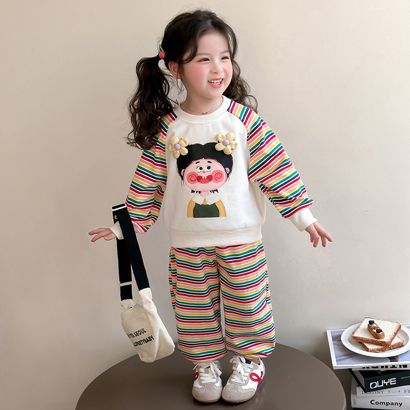 소녀 세트 봄과 가을 2025 새로운 서양식 소녀 아기 유행 캐주얼 스포츠 옷 어린이 봄 옷스토어 가기