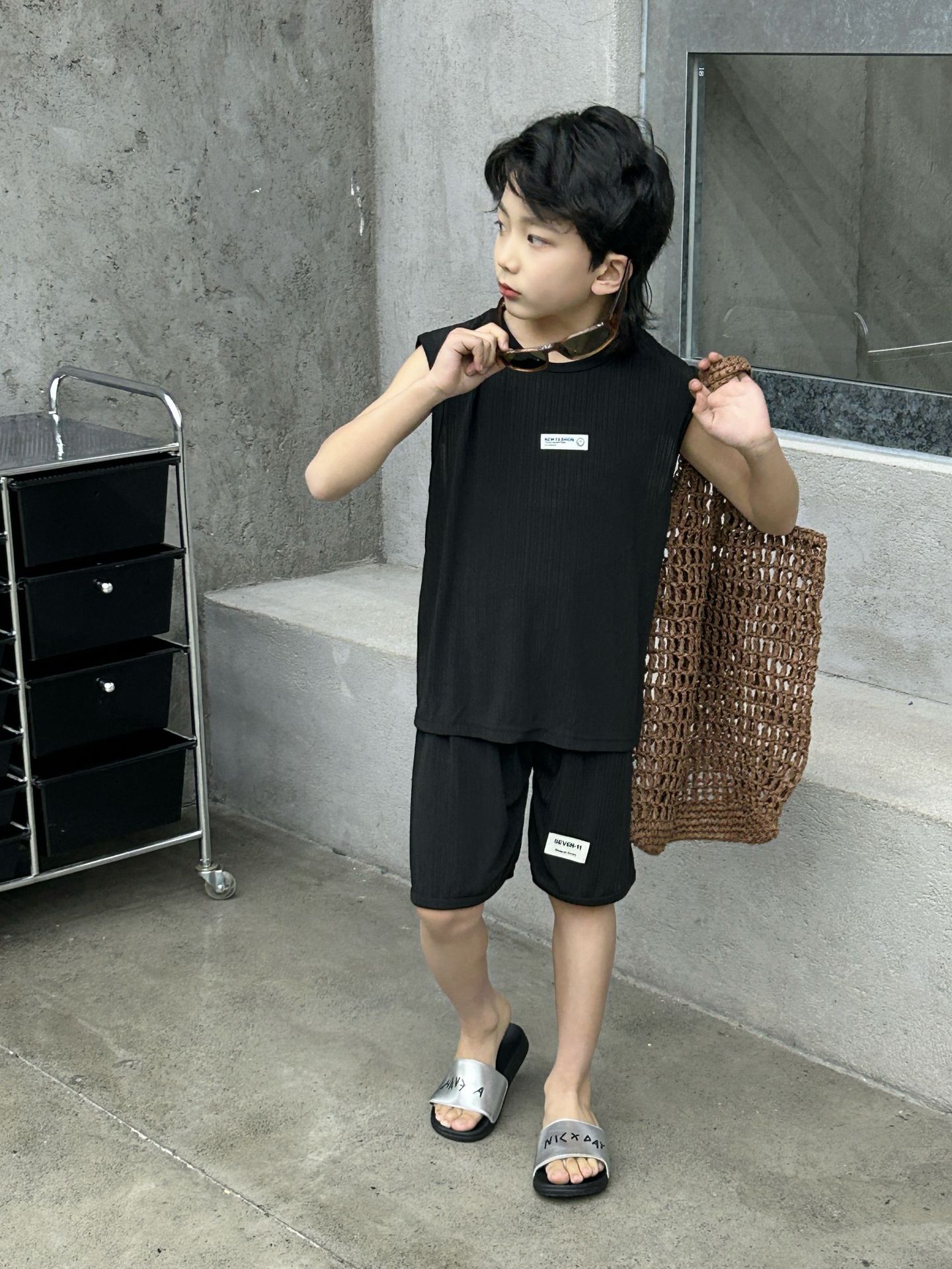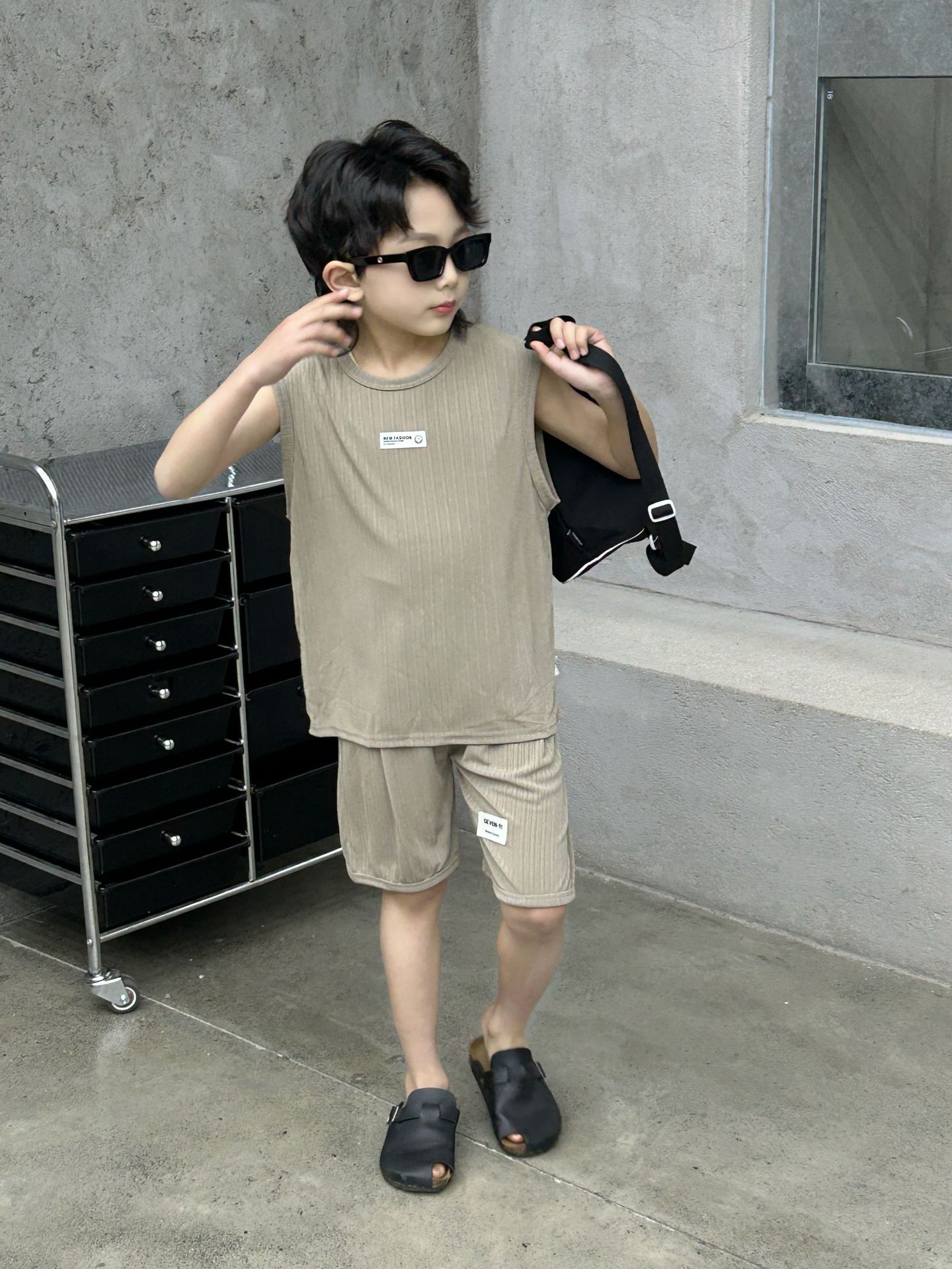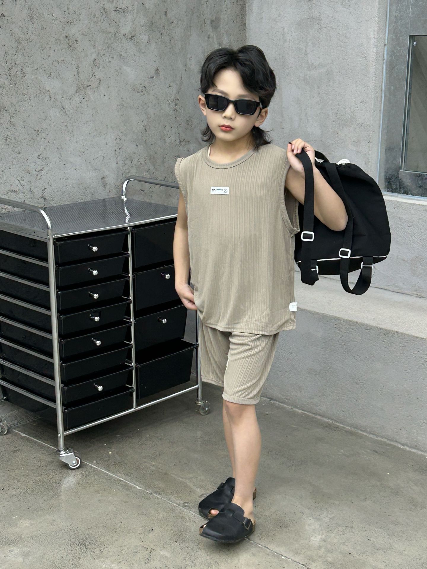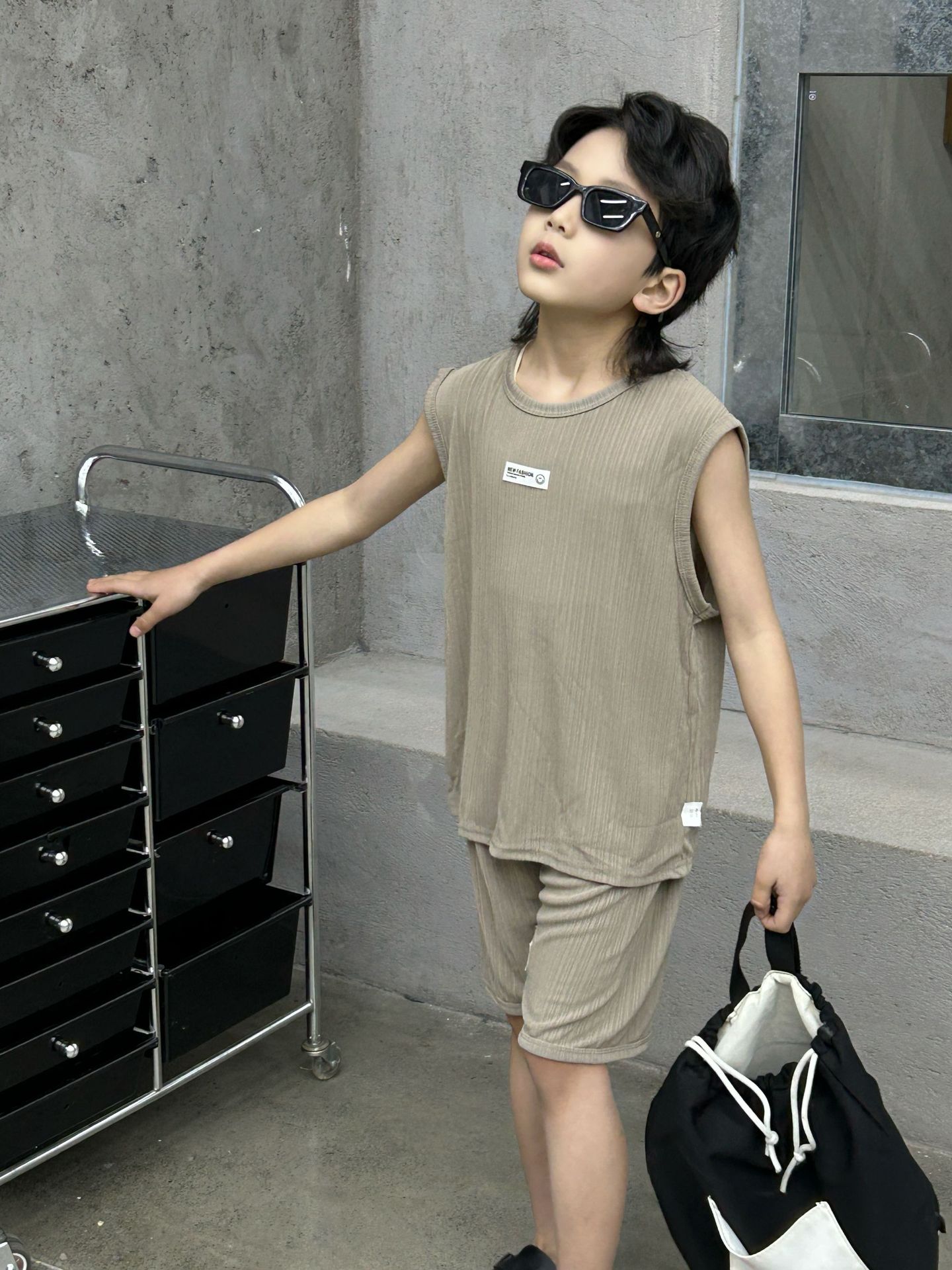 소년의 휴일 스타일 세트 아이들의 얇은 얼음 실크 빠른 건조 투피스 아기의 여름 옷
