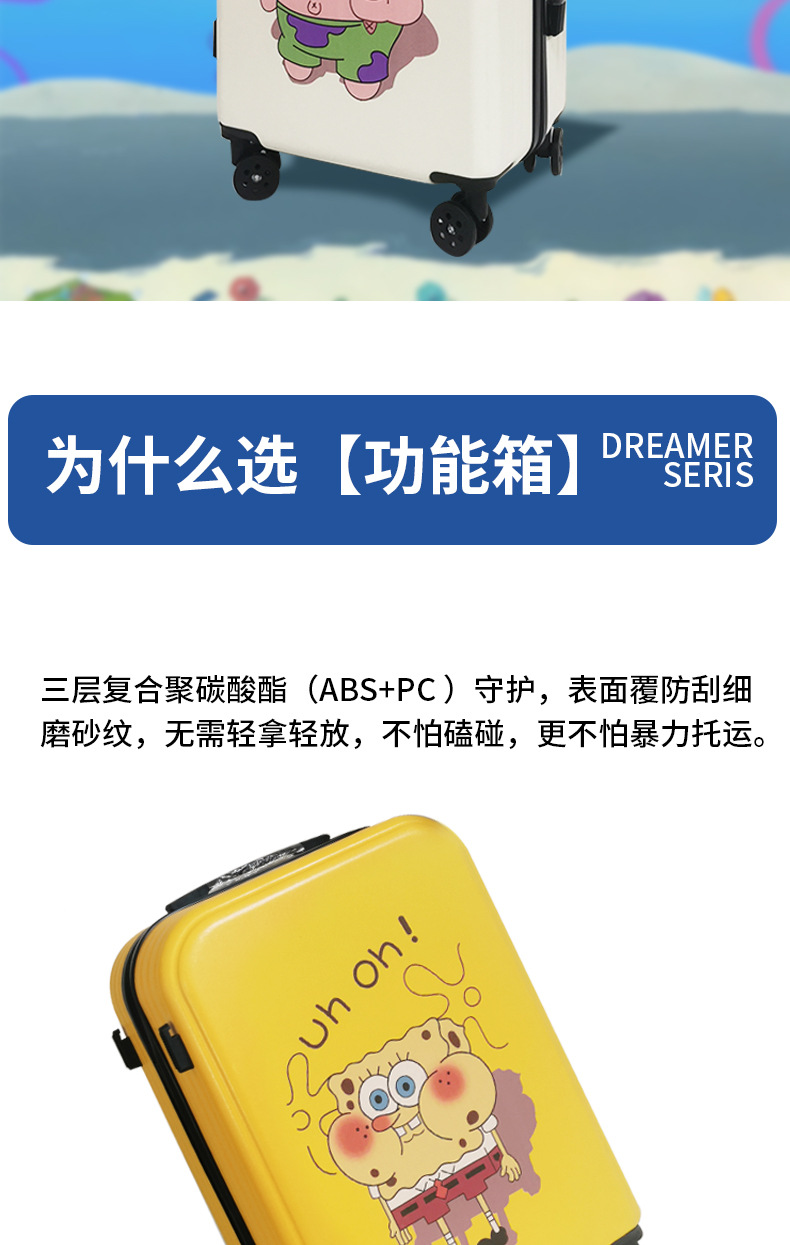 공장 공급 대용량 암호 트롤리 귀여운 스폰지 밥 여행 저장 상자 ABS 침묵 수하물스토어 가기