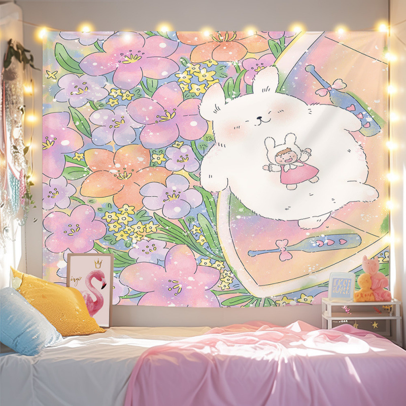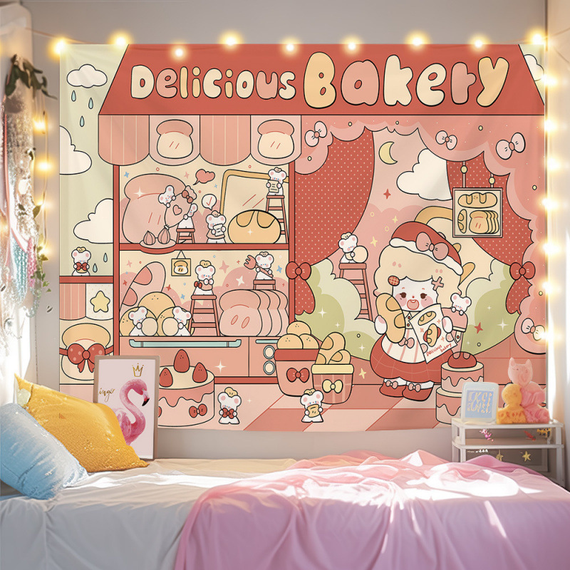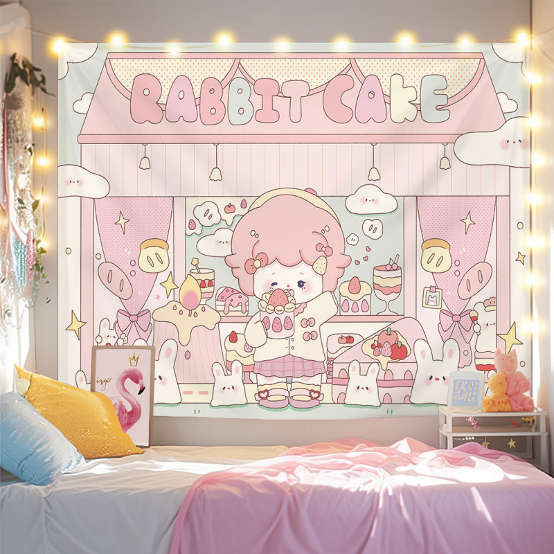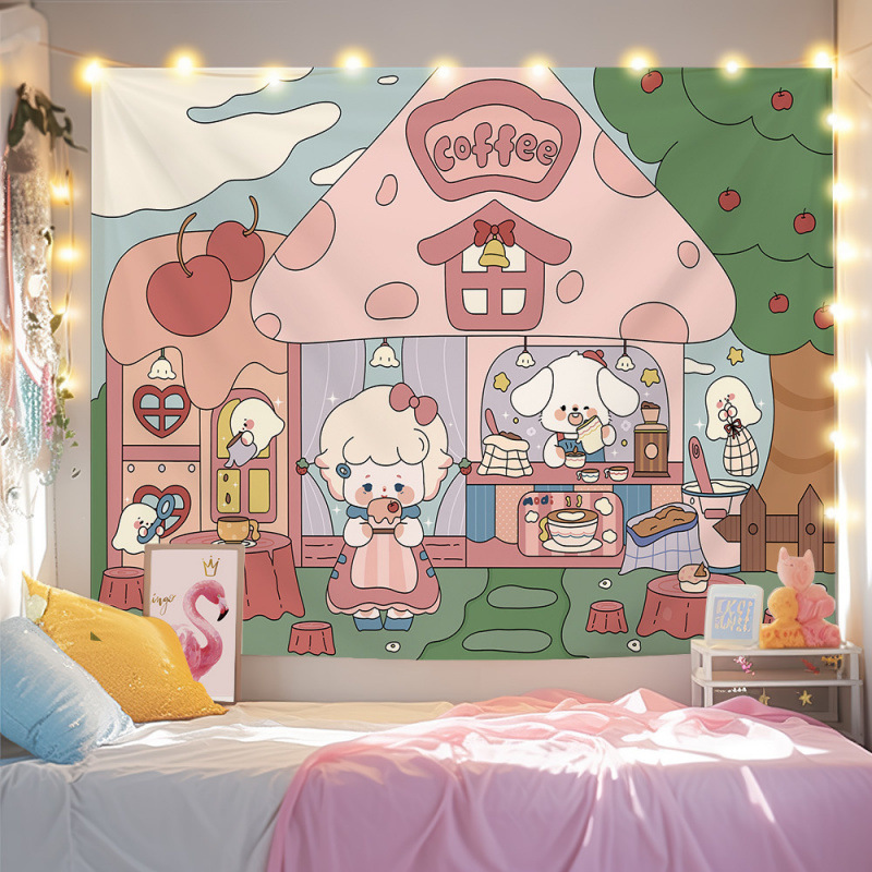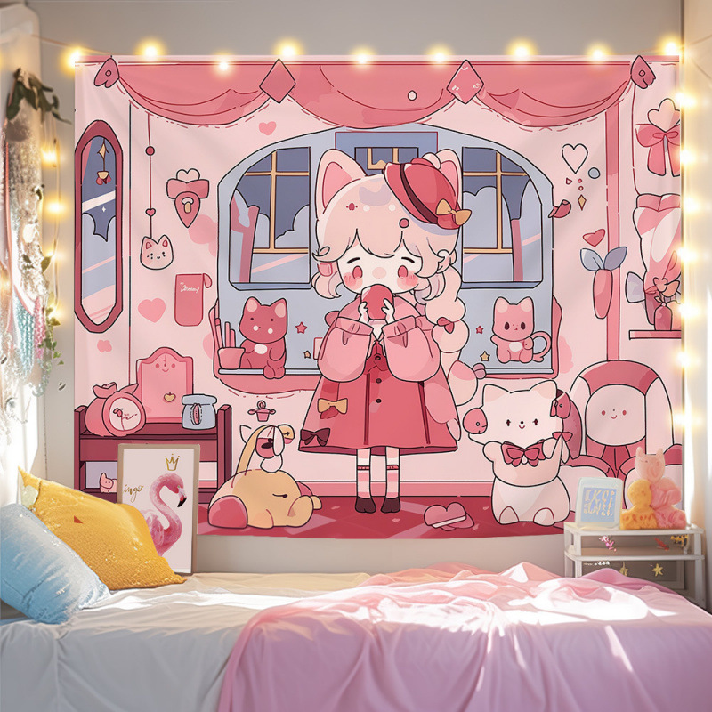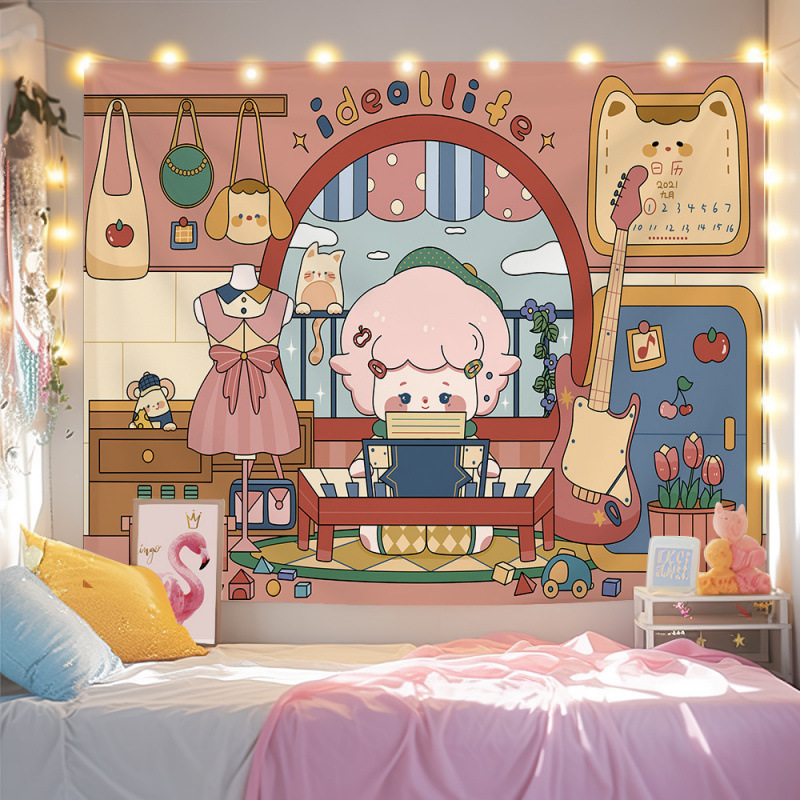 귀여운 만화 치유 요소 스타일 매달려있는 천 작은 빨간 책 침실 배경 천 벽 천 태피스트리 침대 옆 장식 그림스토어 가기