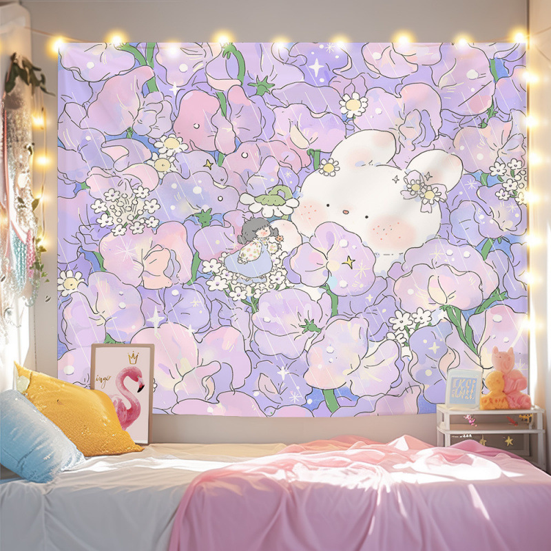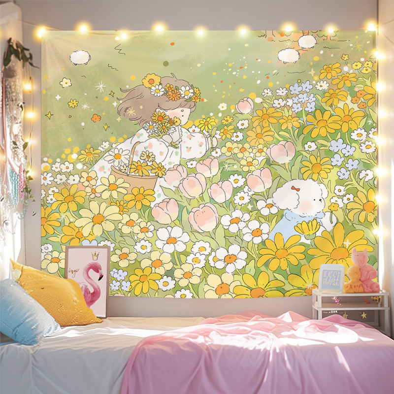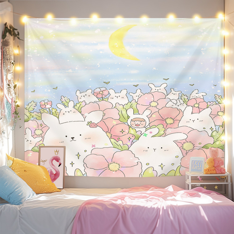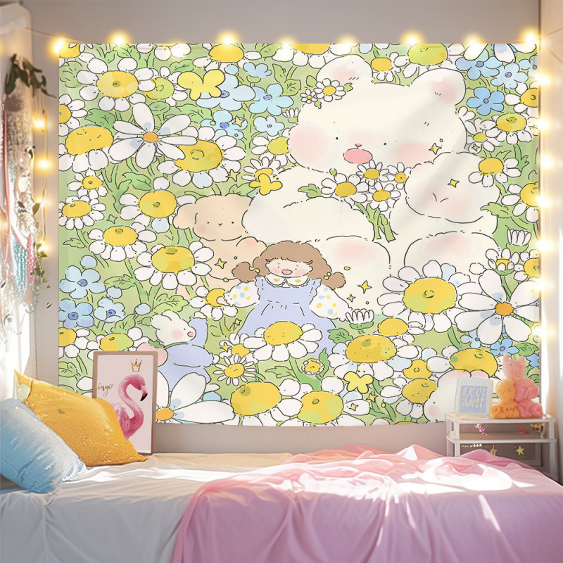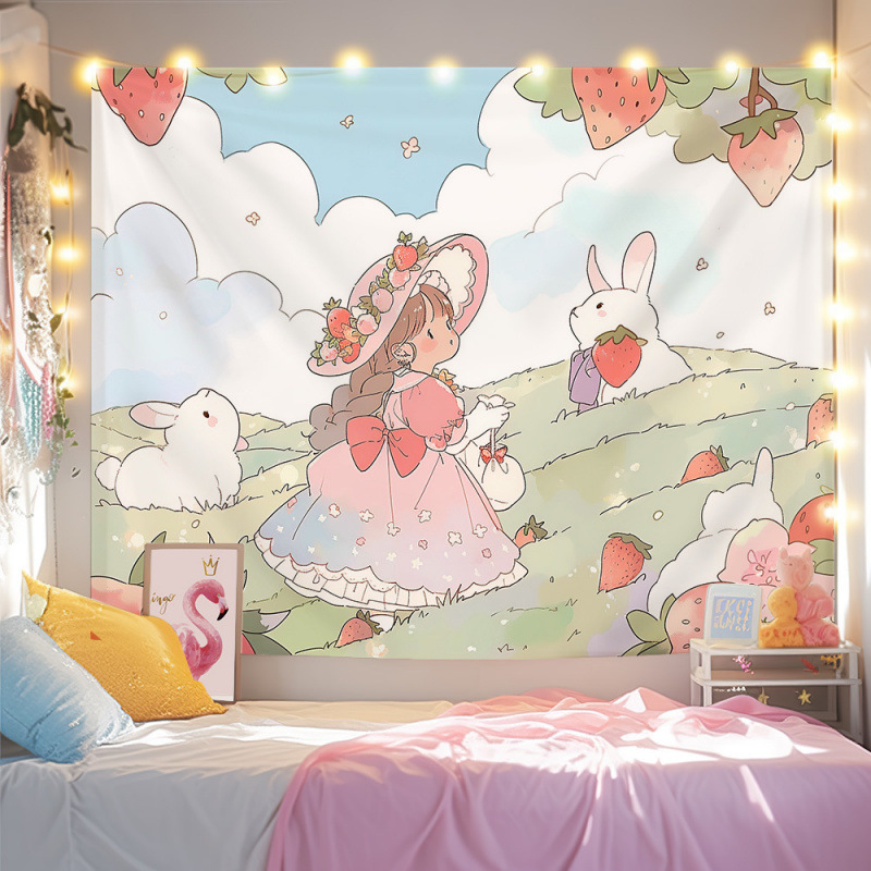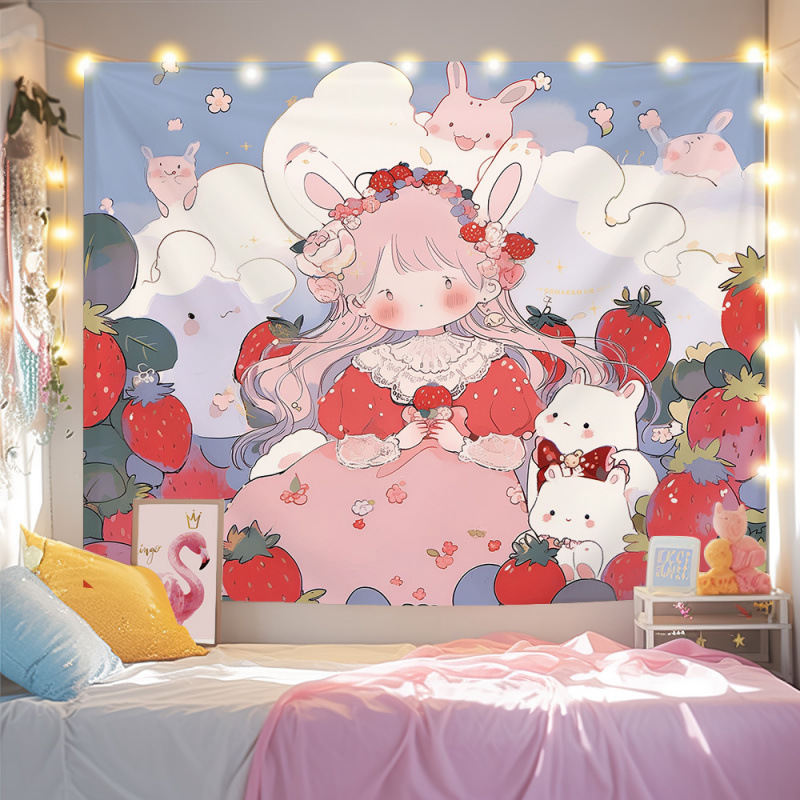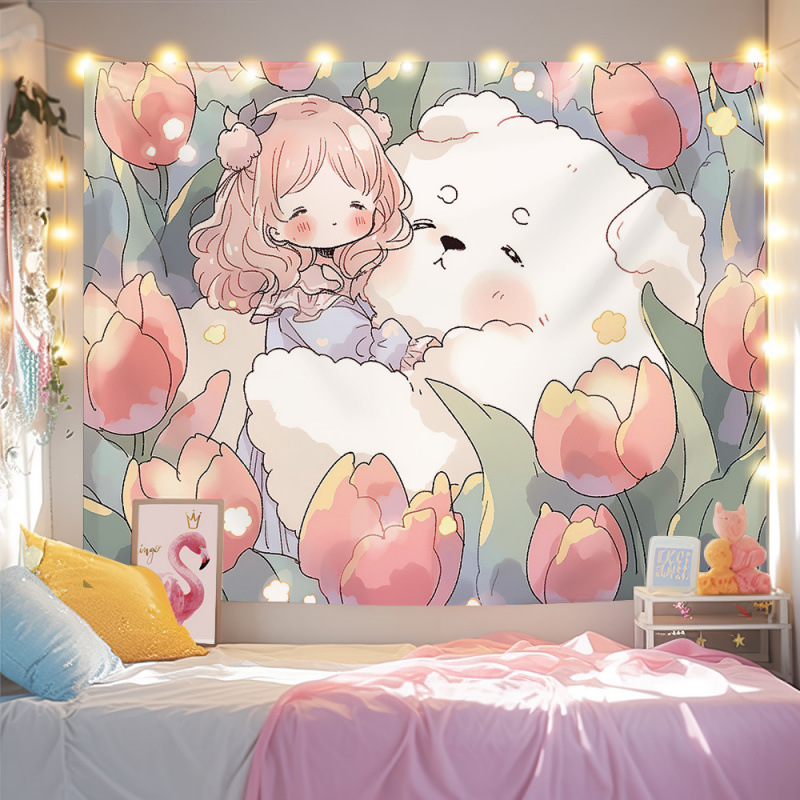 귀여운 만화 치유 요소 스타일 매달려있는 천 작은 빨간 책 침실 배경 천 벽 천 태피스트리 침대 옆 장식 그림스토어 가기