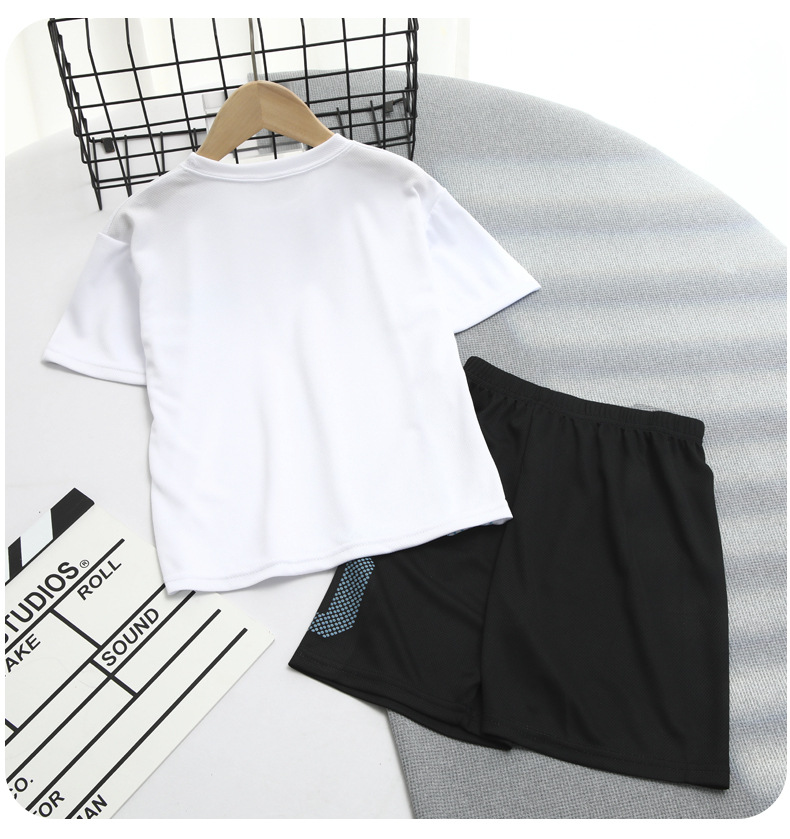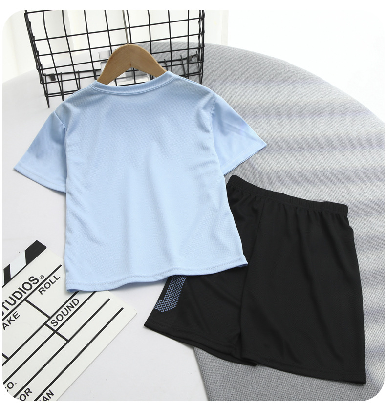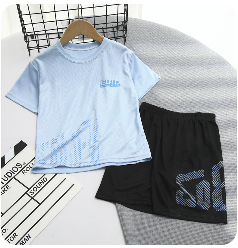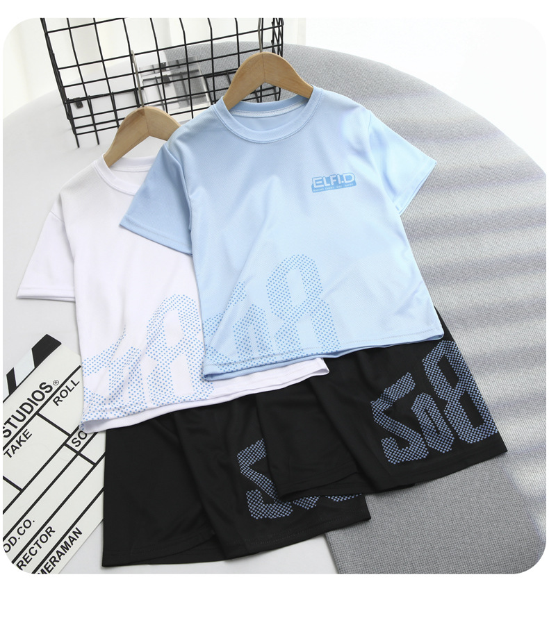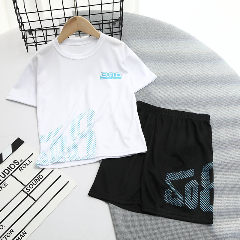 2025 소년 세트 여름 얇은 통기성 빠른 건조 옷 어린이 유행 서양식 외부 착용 스포츠 반바지 짧은 소매
