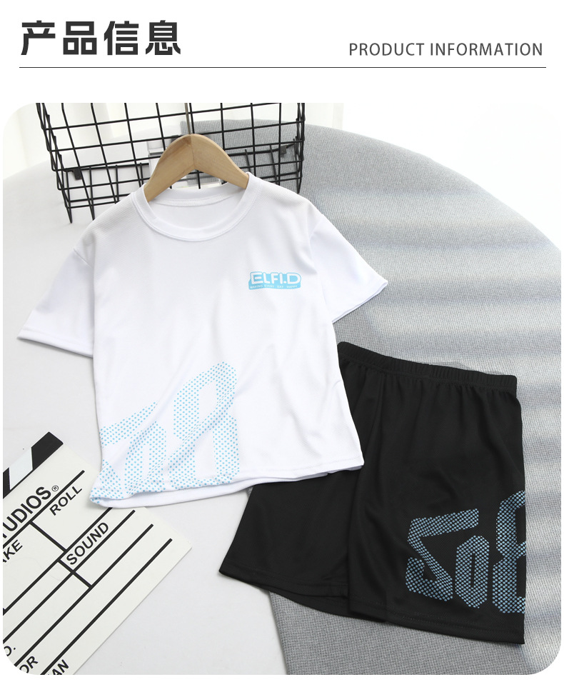 2025 소년 세트 여름 얇은 통기성 빠른 건조 옷 어린이 유행 서양식 외부 착용 스포츠 반바지 짧은 소매스토어 가기
