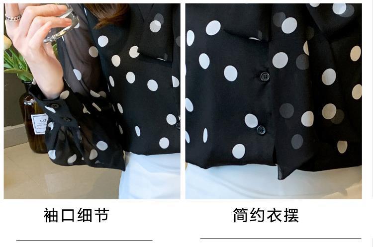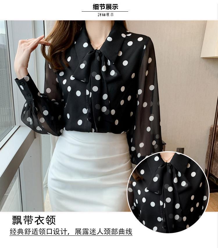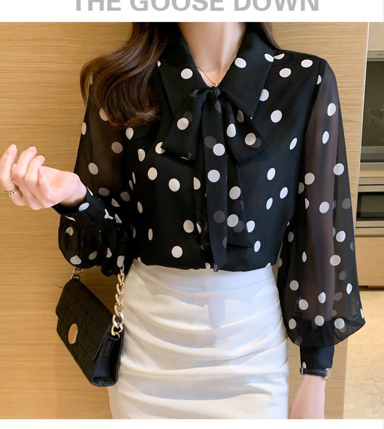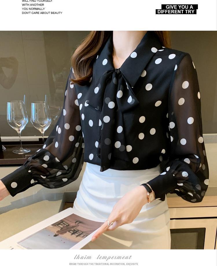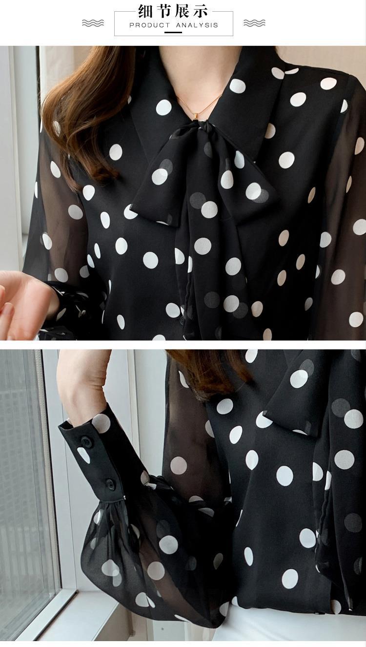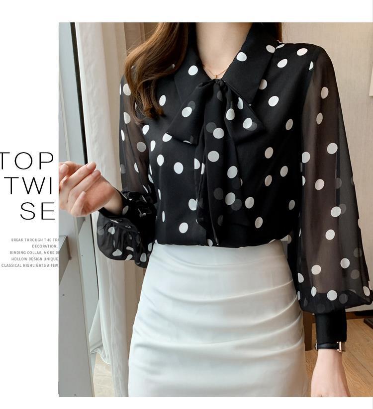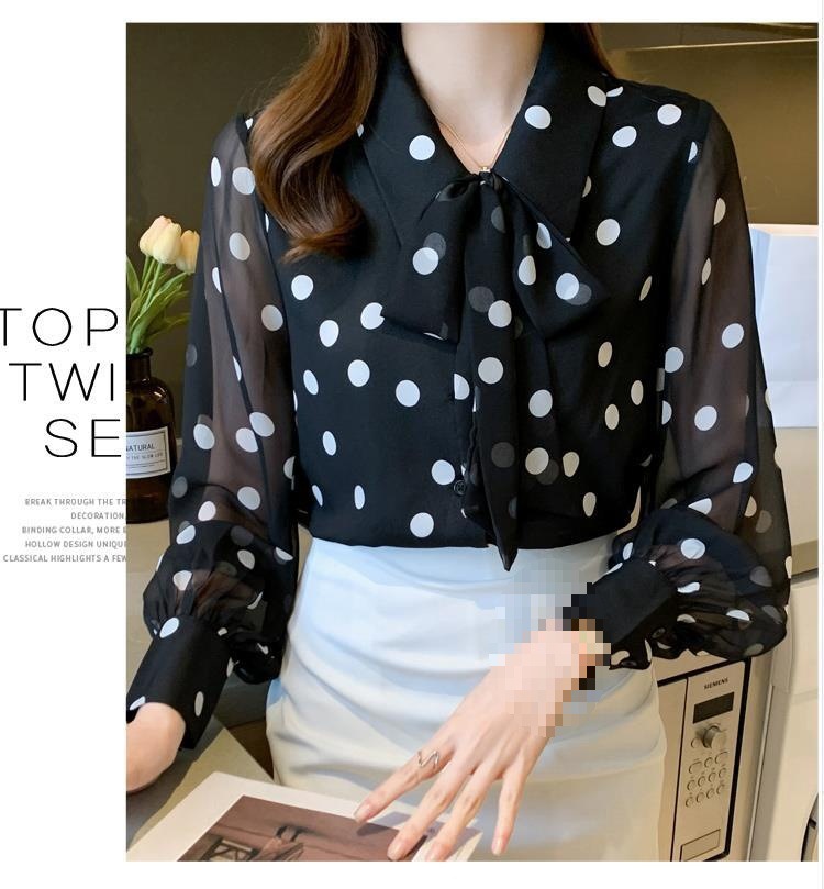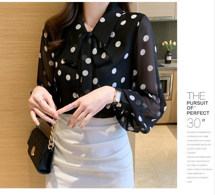 블랙 웨이브 도트 쉬폰 셔츠 여성의 새로운 봄 활 최고 패션 세련된 봄 셔츠스토어 가기