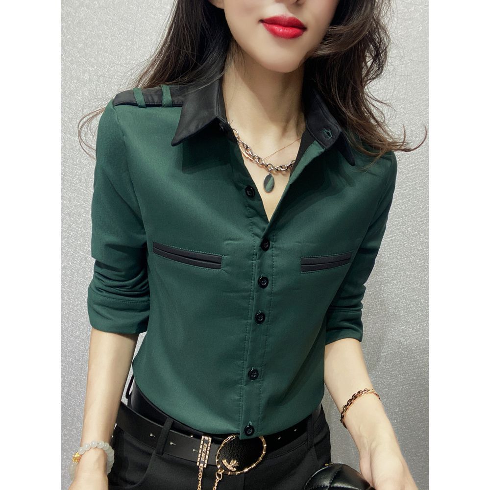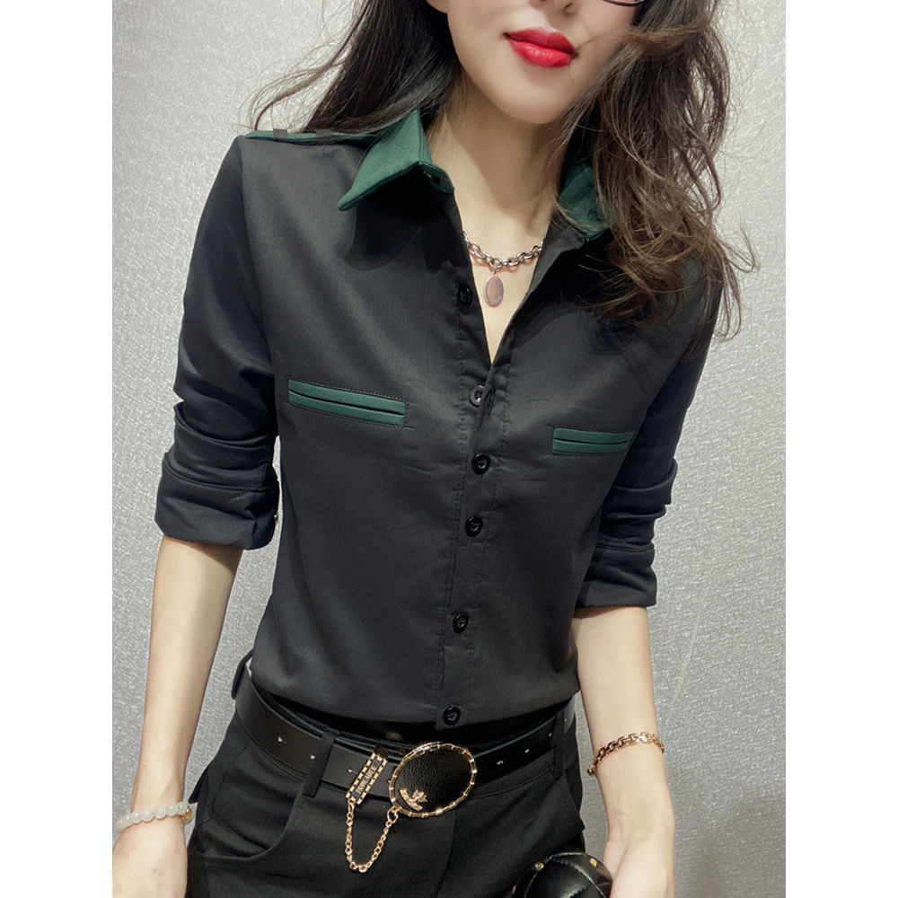 유럽 봄 새로운 한국 스타일 슬림 핏 슬리밍 셔츠 여성용 긴팔 우아한 올 매치베이스 셔츠스토어 가기