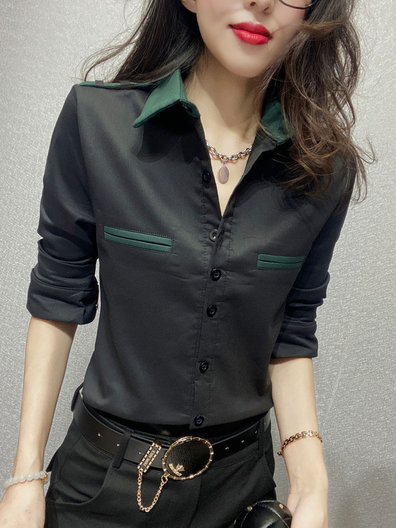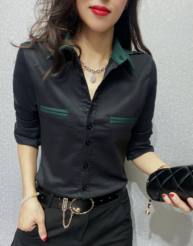 유럽 봄 새로운 한국 스타일 슬림 핏 슬리밍 셔츠 여성용 긴팔 우아한 올 매치베이스 셔츠