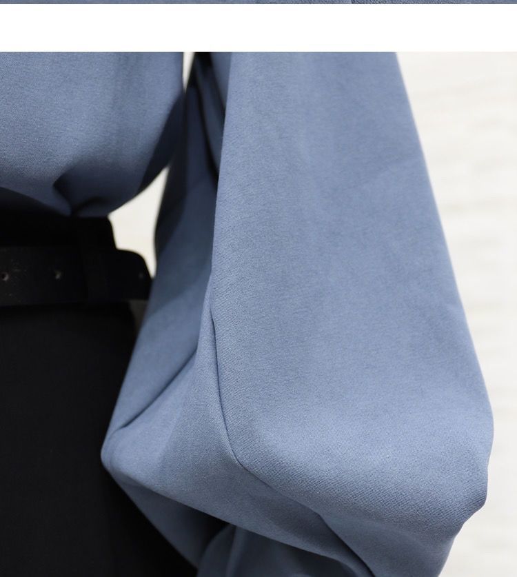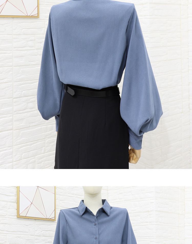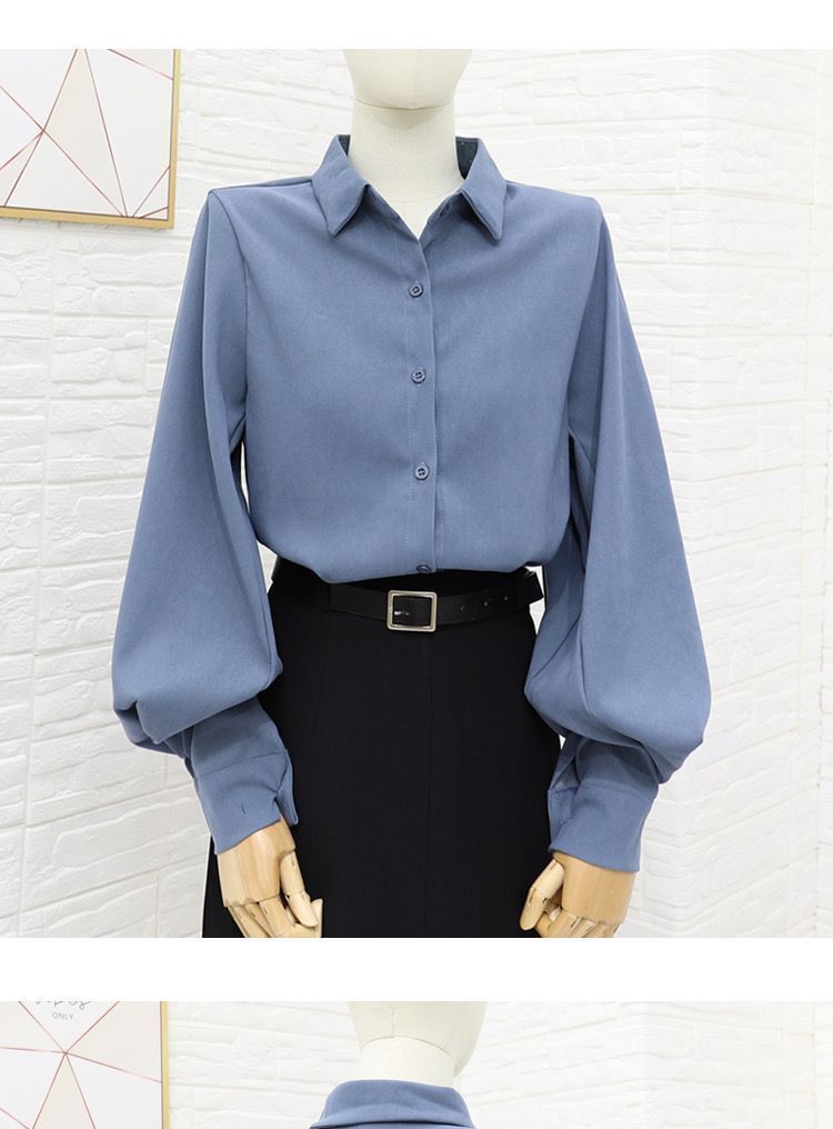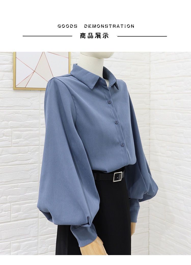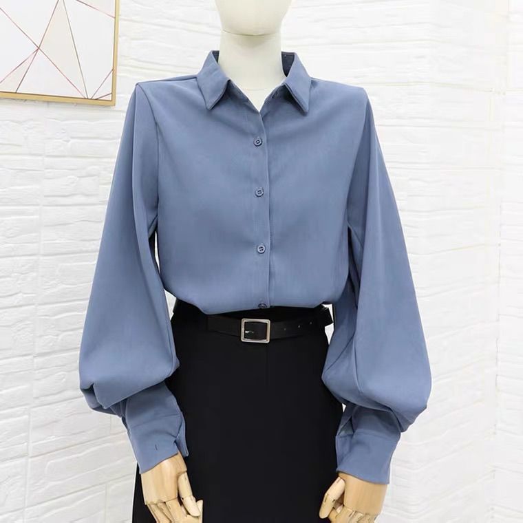 이른 봄 새로운 샌딩 셔츠 여성용 랜턴 슬리브 탑 디자인 센스 니쉬 헤이즈 블루 셔츠 레트로 홍콩 맛스토어 가기